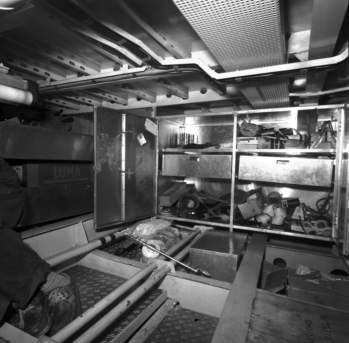 Torpedbåten Piteå, interiör av förrådsutrustning