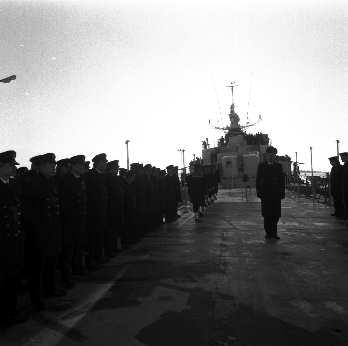 Titel: Carlskrona Befälsflaggan hissas på minfartyget Carlskrona