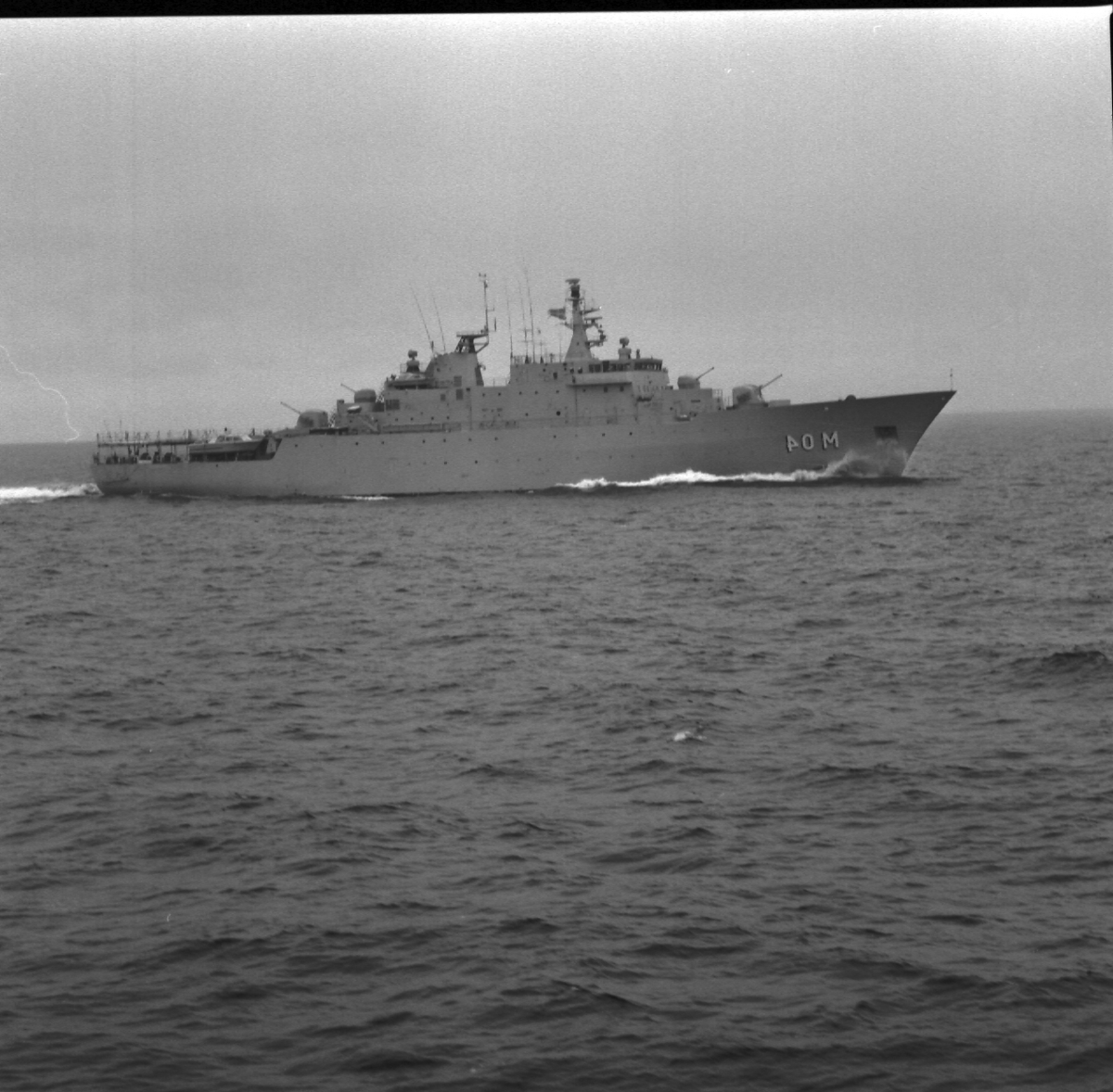 Titel: Carlskrona Minfartyget Carlskrona, provtur.\\Helikopterbilder