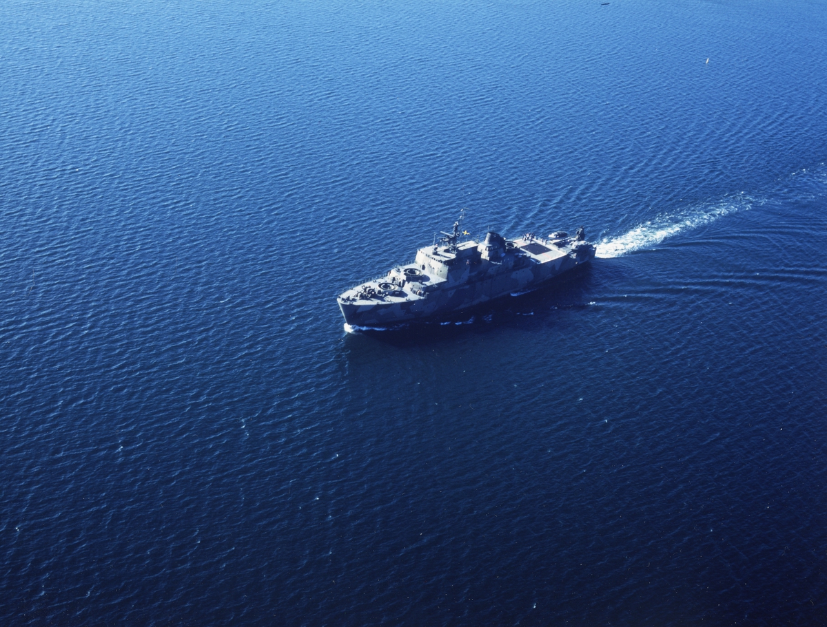 Foto taget uppifrån på Minfartyget Älvsborg till sjöss