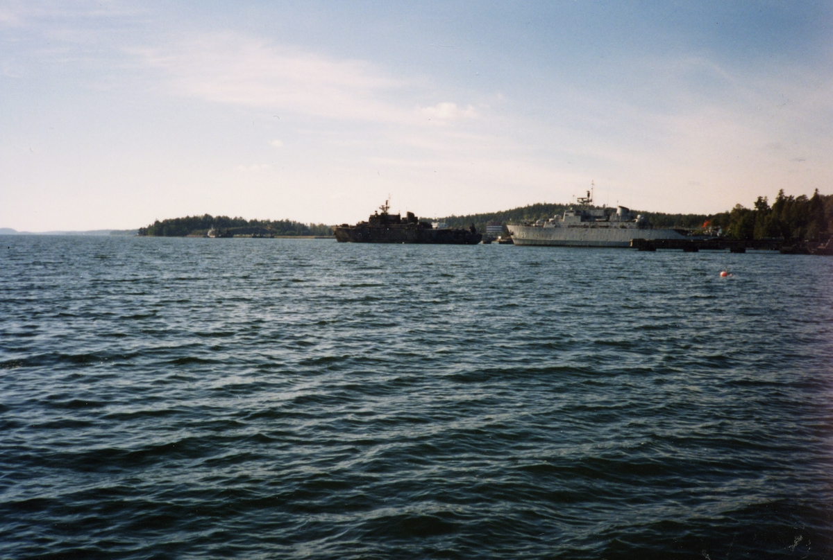 Minfartygen Älvsborg och Visborg förtöjda i Vitså 1995