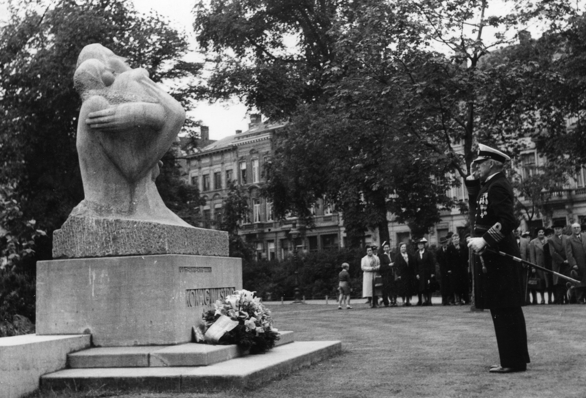 Kransnedläggning vid minnes-monumentet över Drottning Astrid av Belgien.