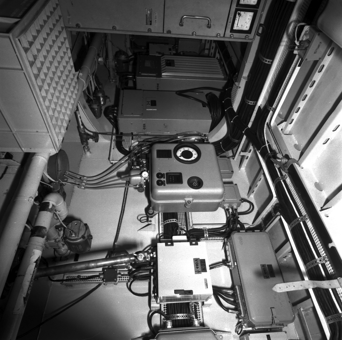 Titel: Piteå och Västerås Interiöer från torpedbåtarna Piteå och Västerås.\\Styrmaskin, SLC, maskinrum och bryggan.