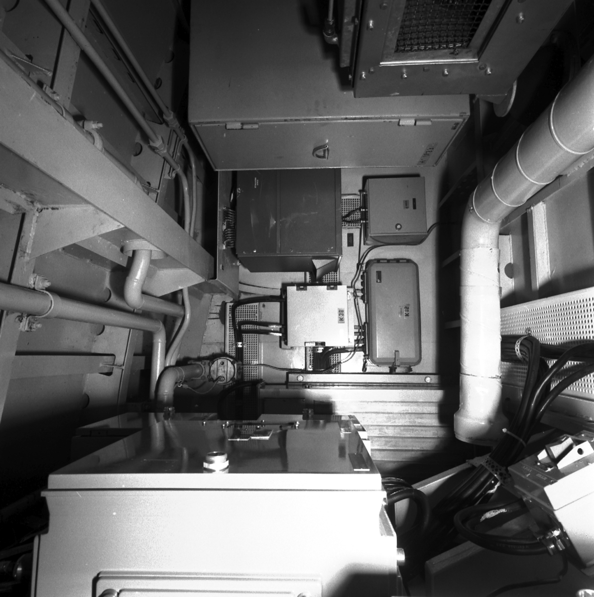 Titel: Piteå och Västerås Interiöer från torpedbåtarna Piteå och Västerås.\\Styrmaskin, SLC, maskinrum och bryggan.