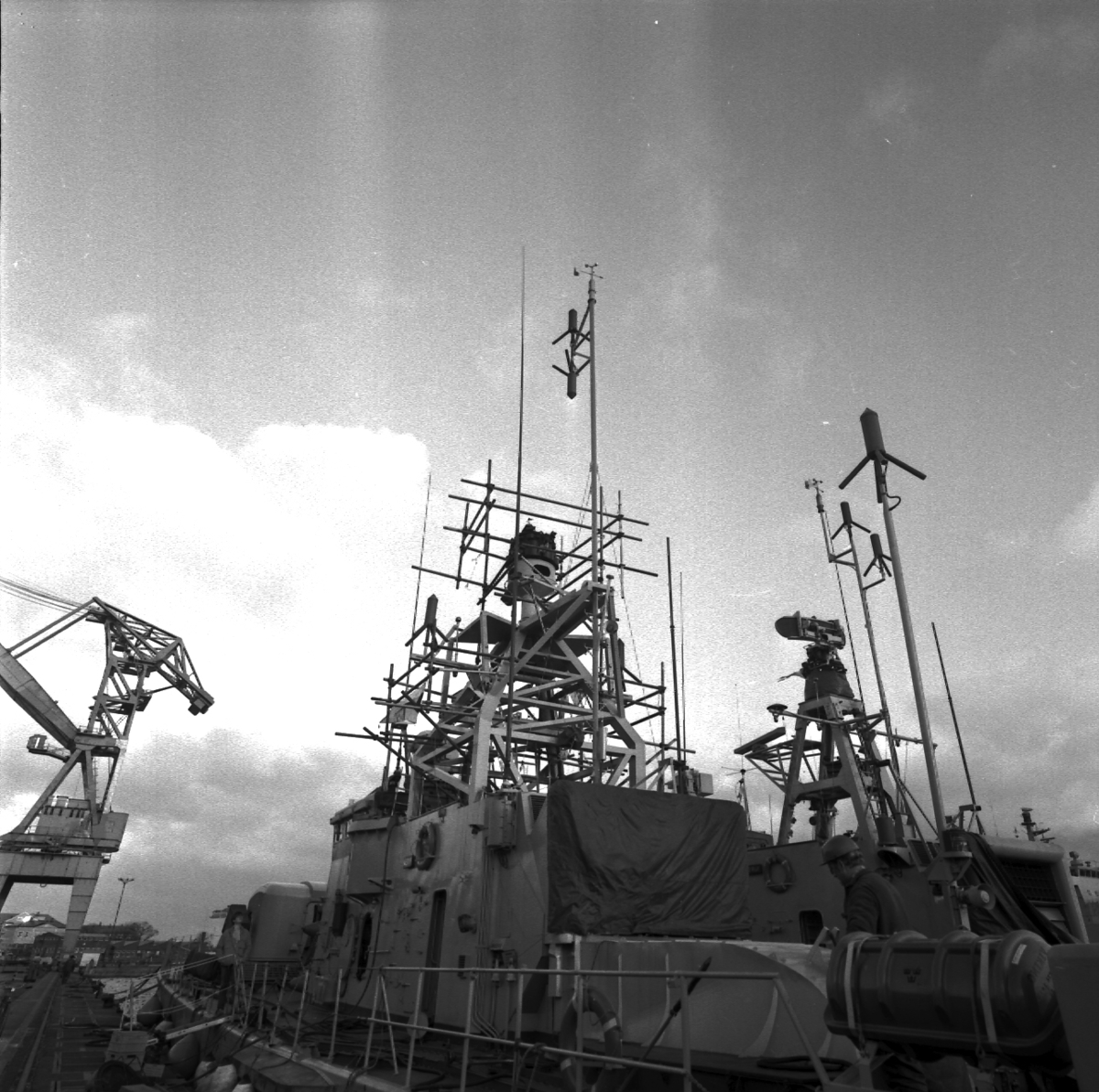 Titel: Piteå och Västerås Interiöer från torpedbåtarna Piteå och Västerås.\\Styrmaskin, SLC, maskinrum och bryggan.