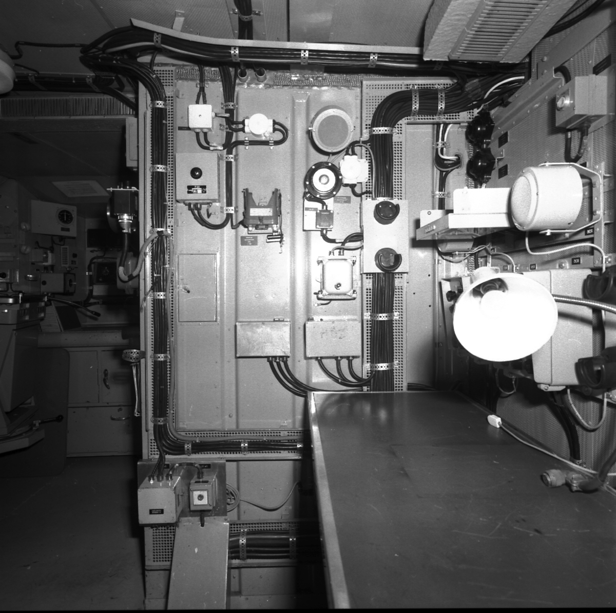 Titel: Piteå och Västerås Interiörer av torpedbåtarna Piteå och Västerås.\\Styrmaskin, SLC, maskinrum och bryggan.