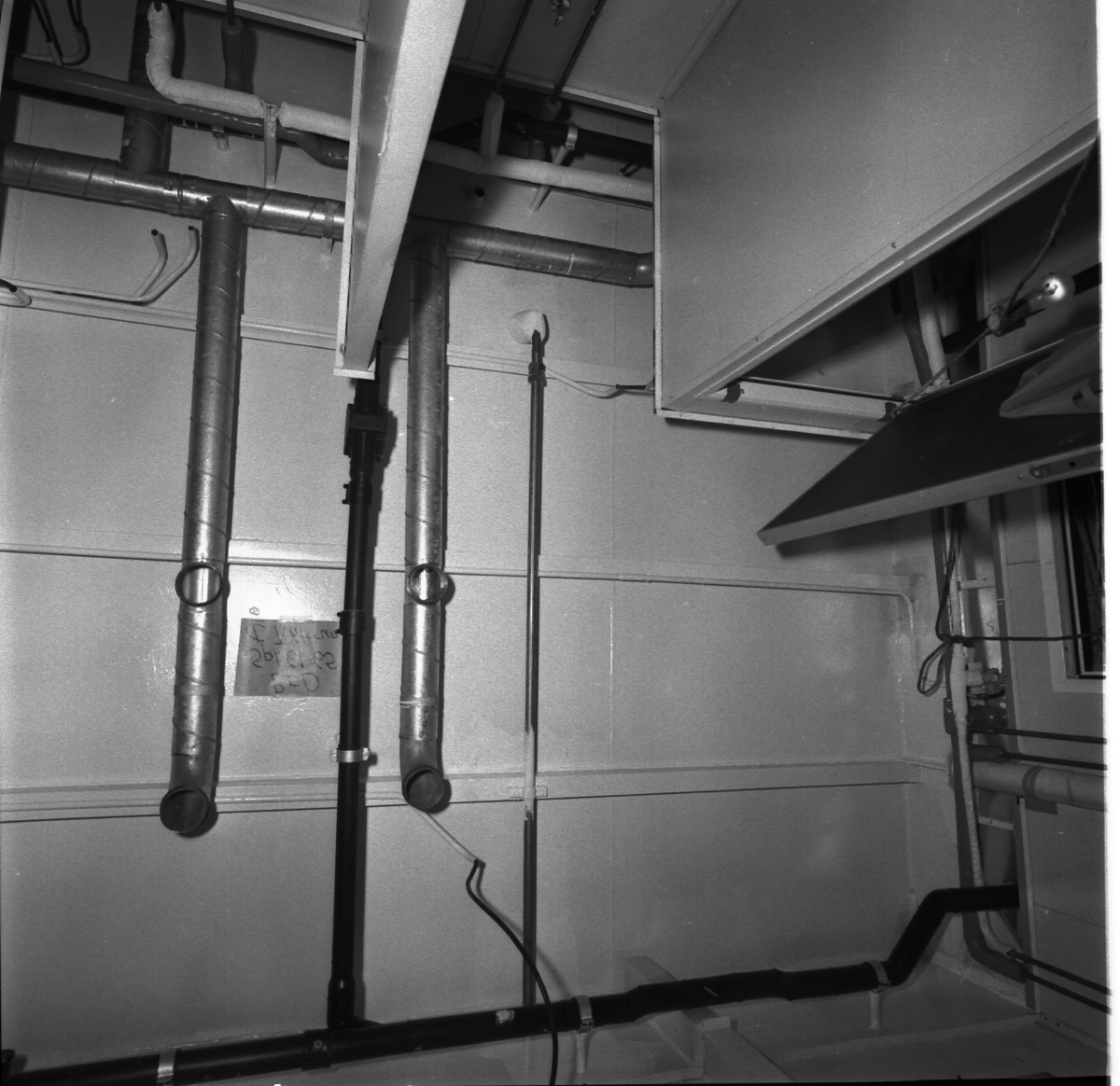 Interiör av minfartyget Carlskrona, rör arrangemang i taken