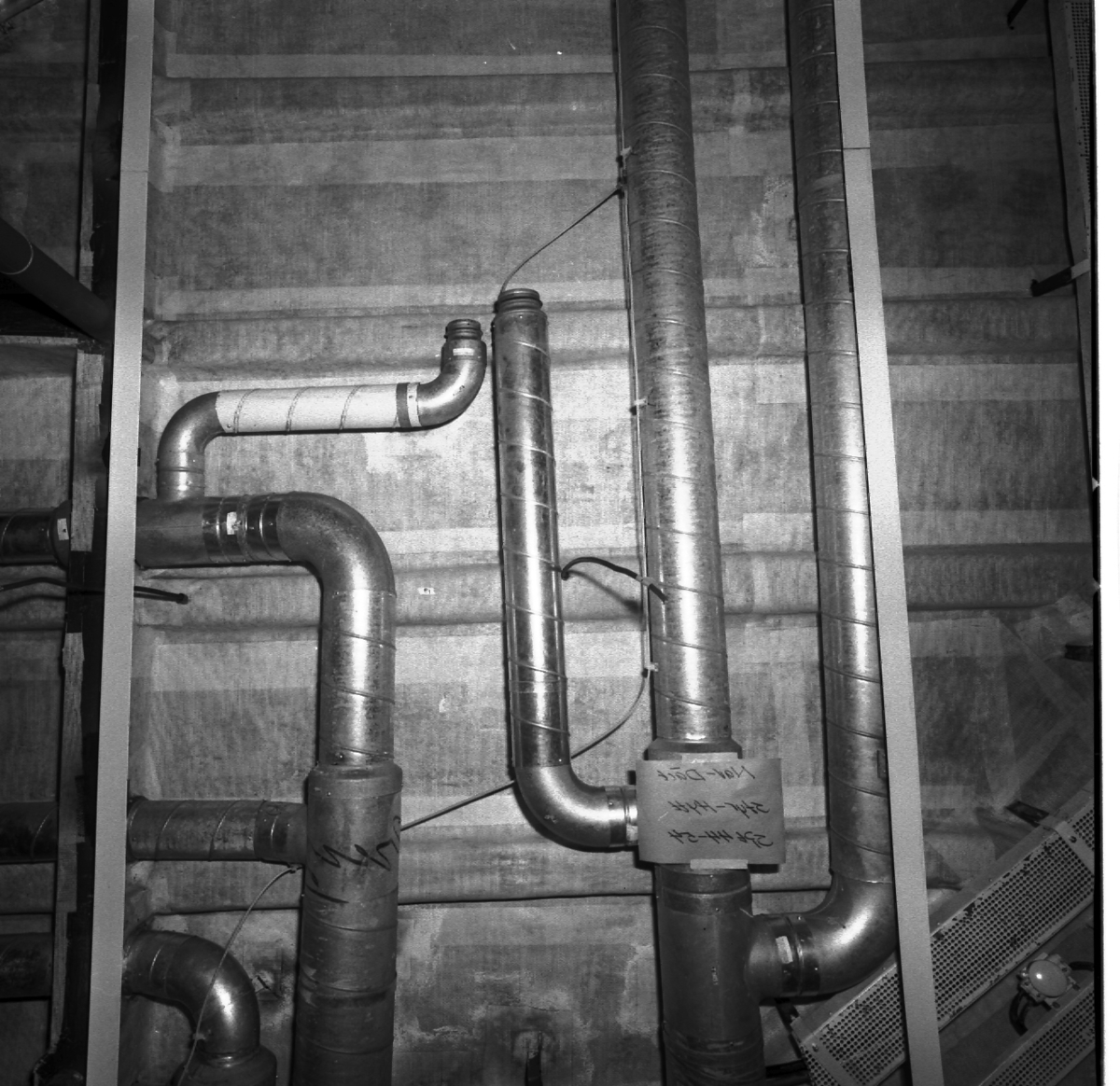 Interiör av minfartyget Carlskrona, rör arrangemang i taken