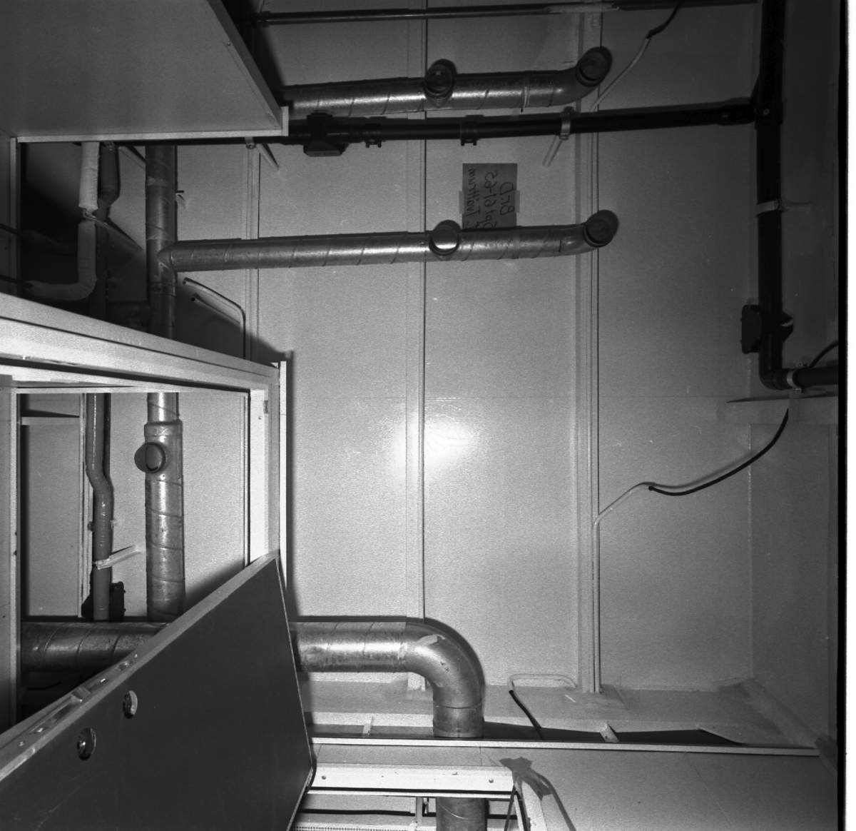 Interiör av minfartyget Carlskrona, rör arrangemang i taken