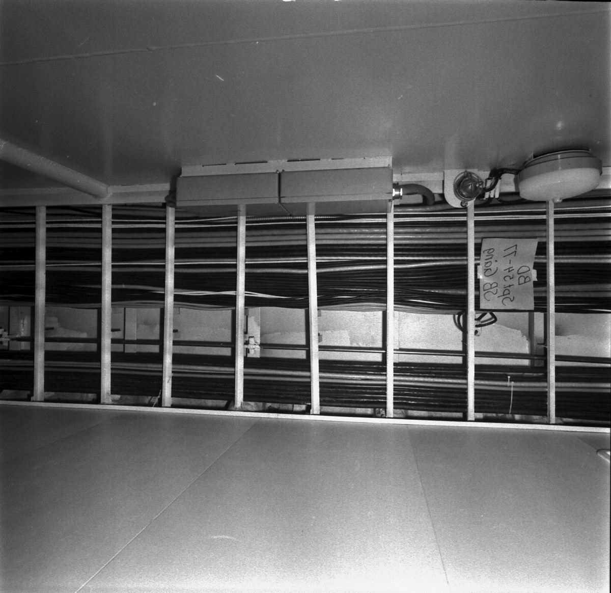 Interiör av minfartyget Carlskrona, rör arrangemang i taken