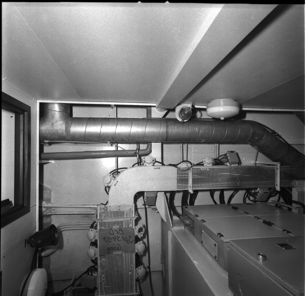 Interiör av minfartyget Carlskrona, rör arrangemang i taken