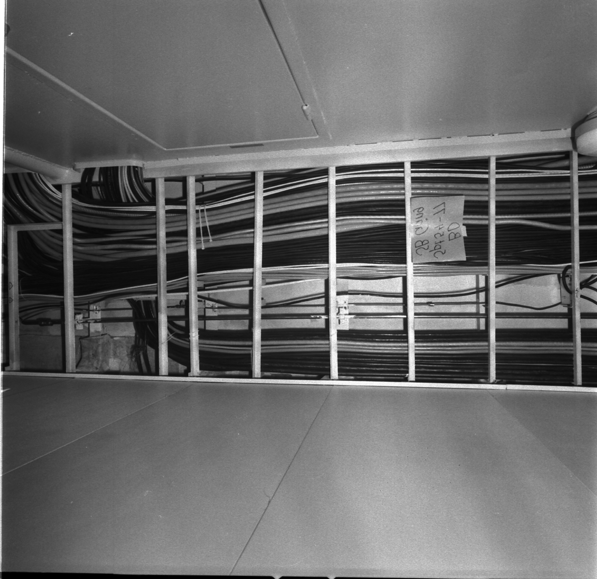 Interiör av minfartyget Carlskrona, rör arrangemang i taken