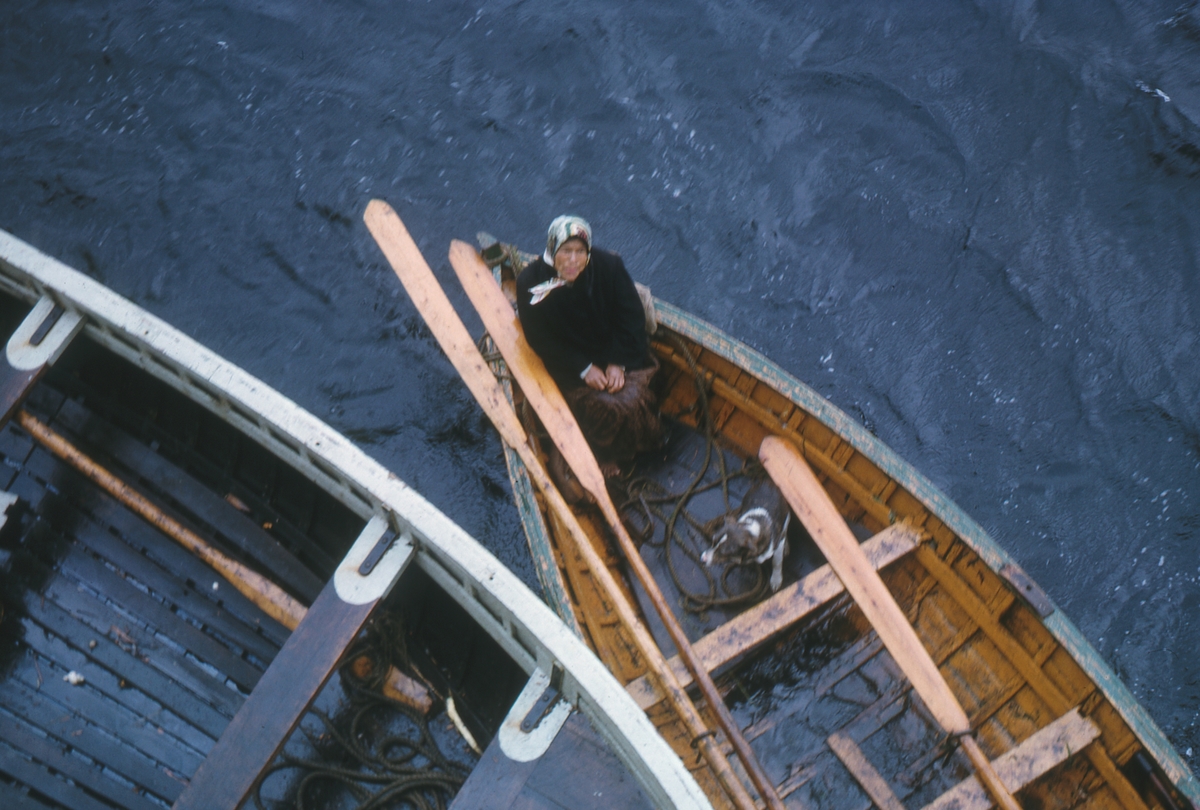 Alacalufisk kvinna blir kvar i roddbåten