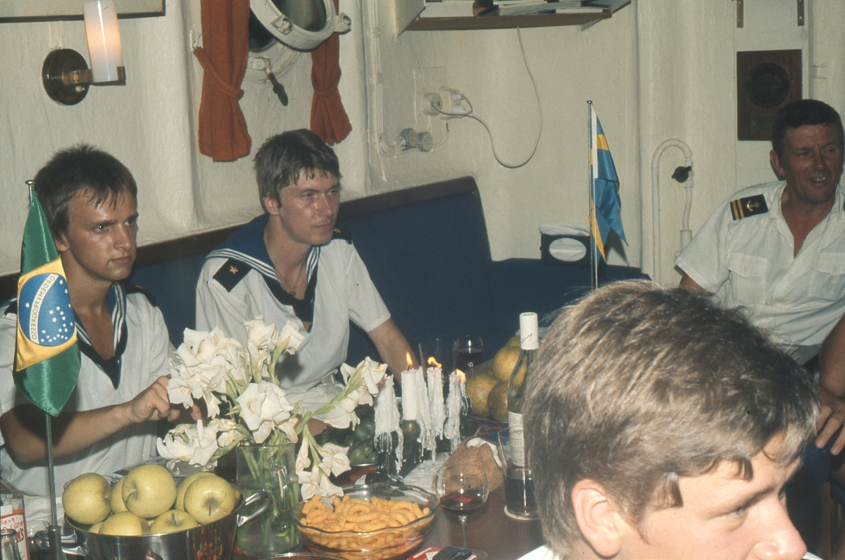 Vitklädda kollegor i mässen, fest, Nyårsafton?