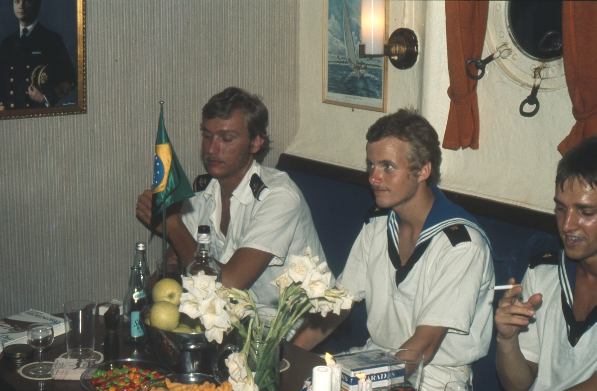 Vitklädda kollegor i mässen, fest, Nyårsafton?