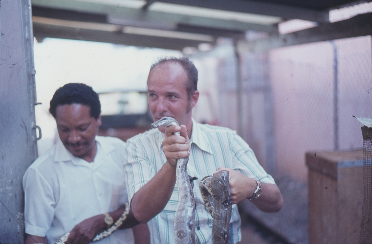 Roland Burman håller lansormen (hona)