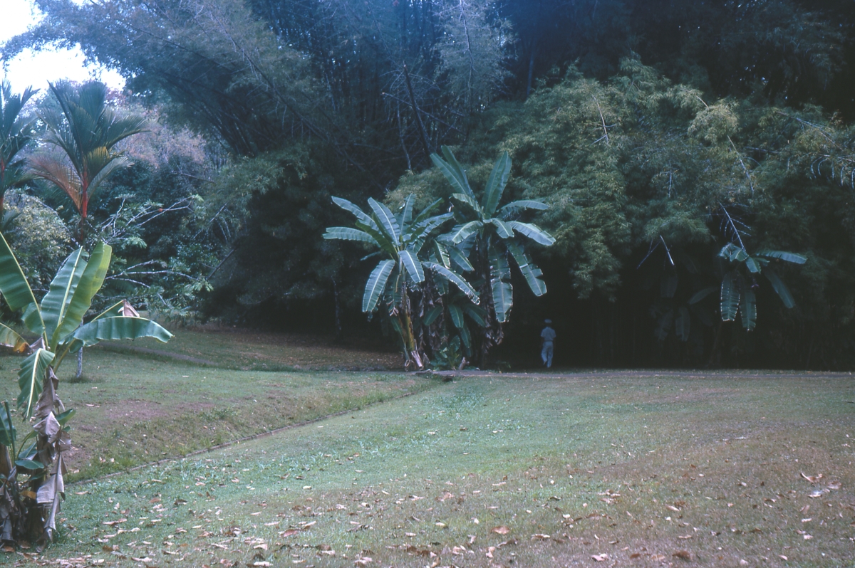 Två kollegor under bananplantor