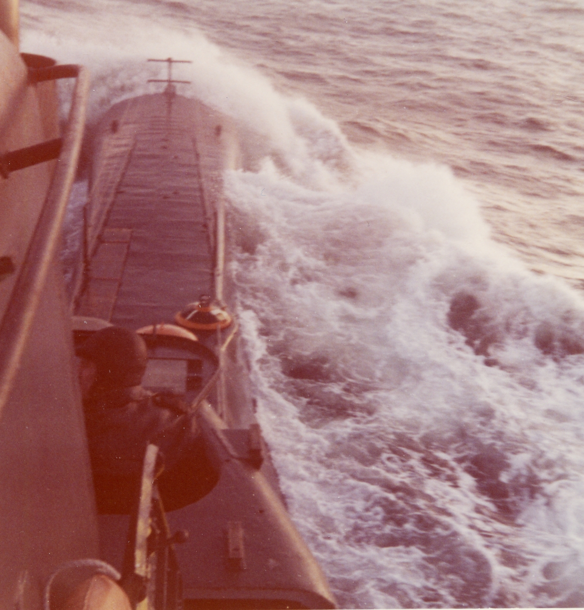 Foto tagen från tornet på U-båten Gäddan i ytläge.