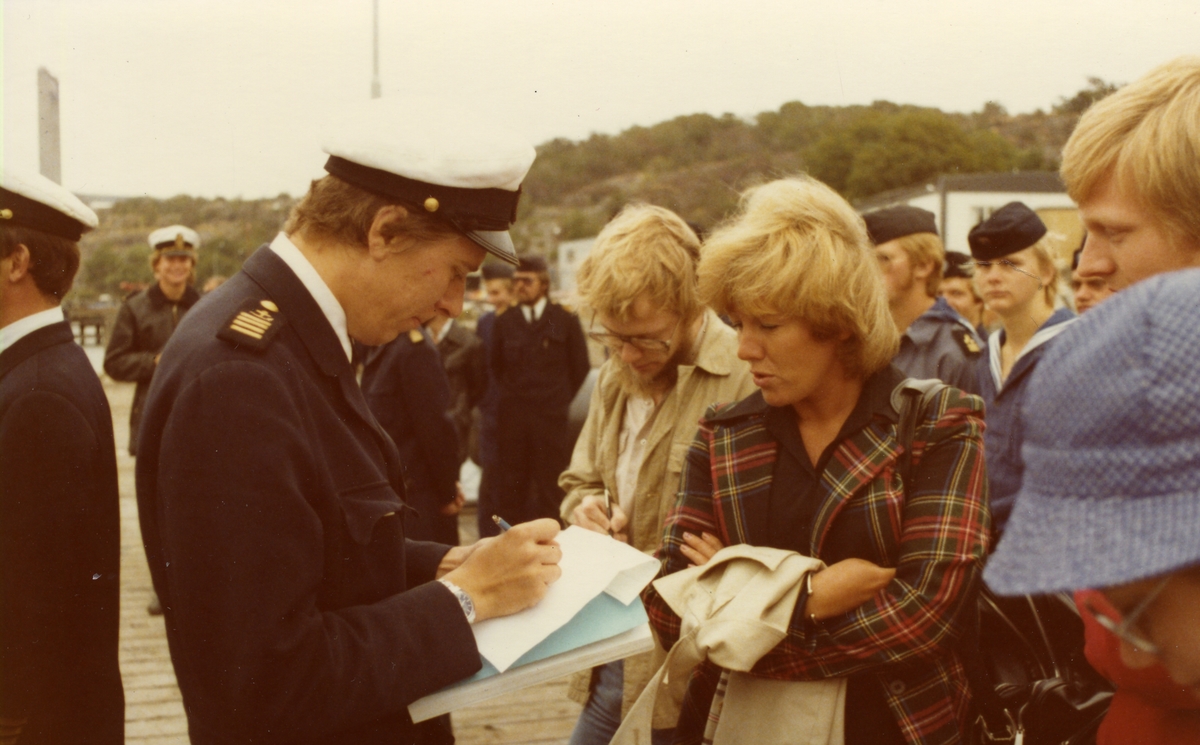 Radiotelegrafist Peter Fjellvind tar upp anhöriga före avgång med Hajen, Hajens sista dykning