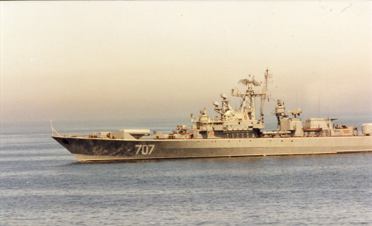 Den ryska robotfregatten BDITELNYJ (707) till sjöss.