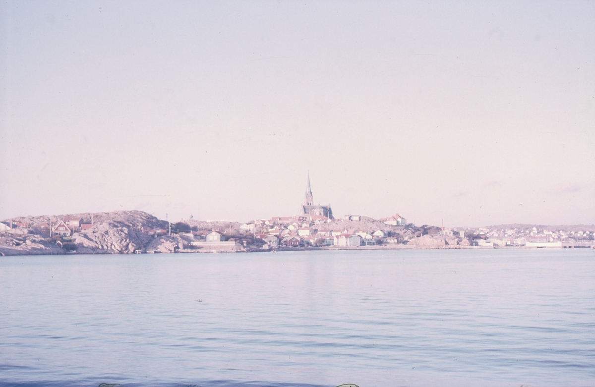Staden sedd från havet, kyrkan dominerar silhuetten