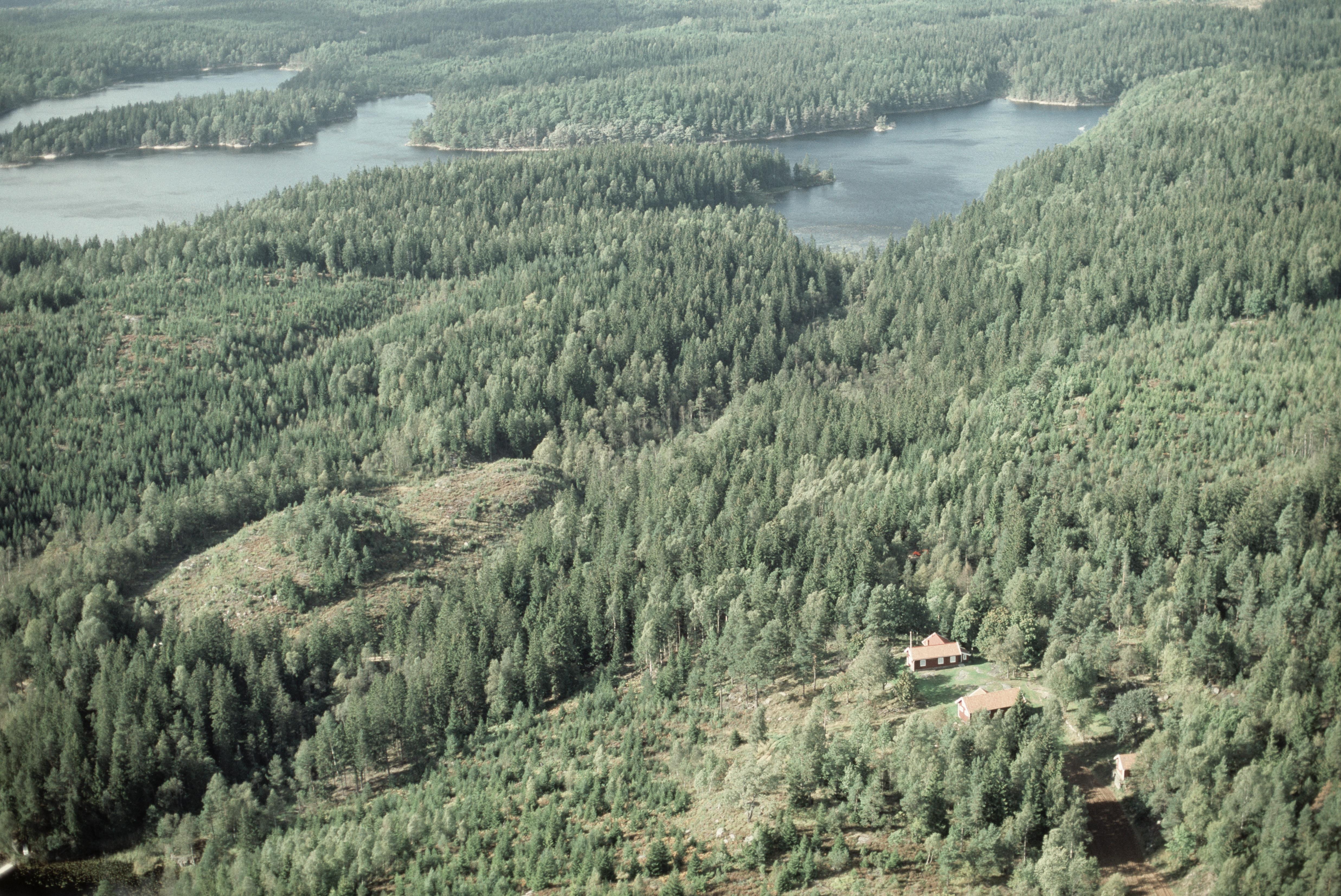 Torpet Kruset vid Kringlemossen. I bildens övre del Stora Skarsjön i socknet Ljung. Bilden är tagen mot (väderstreck): NNV