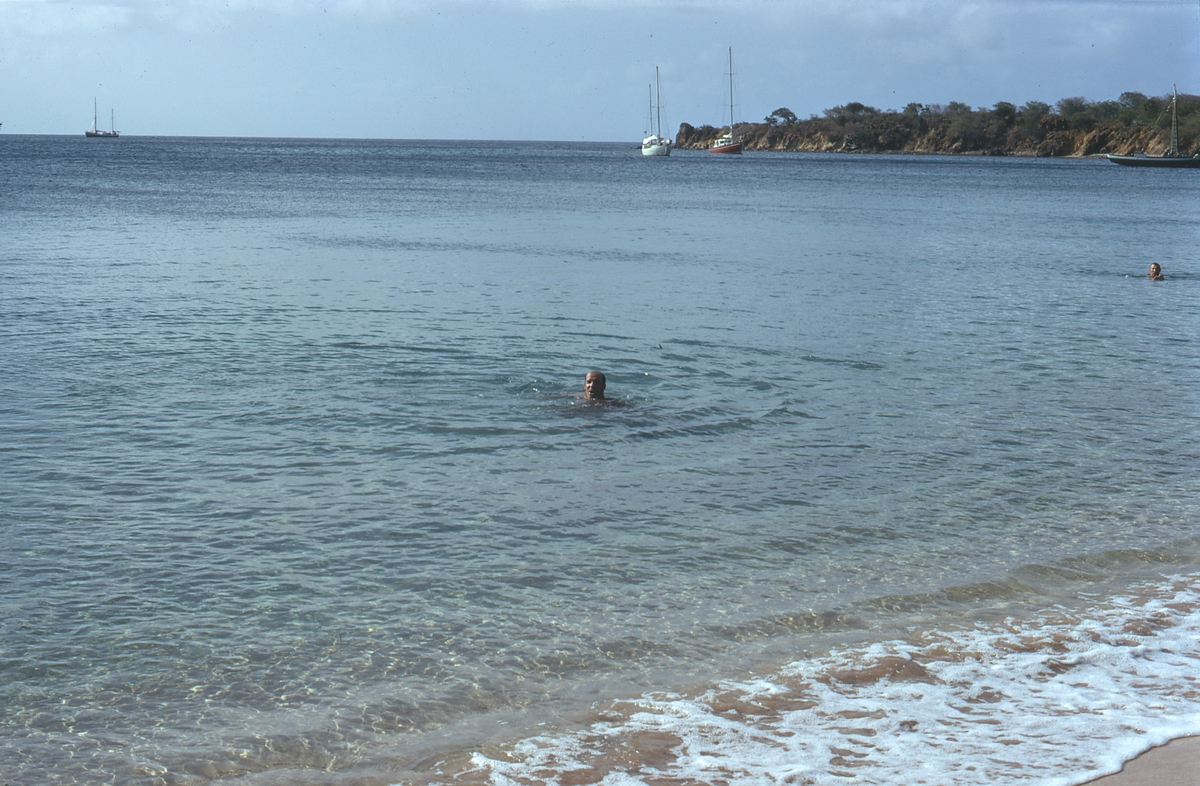 Roland Burman badar, strandhugg på en av de karibiska öarna