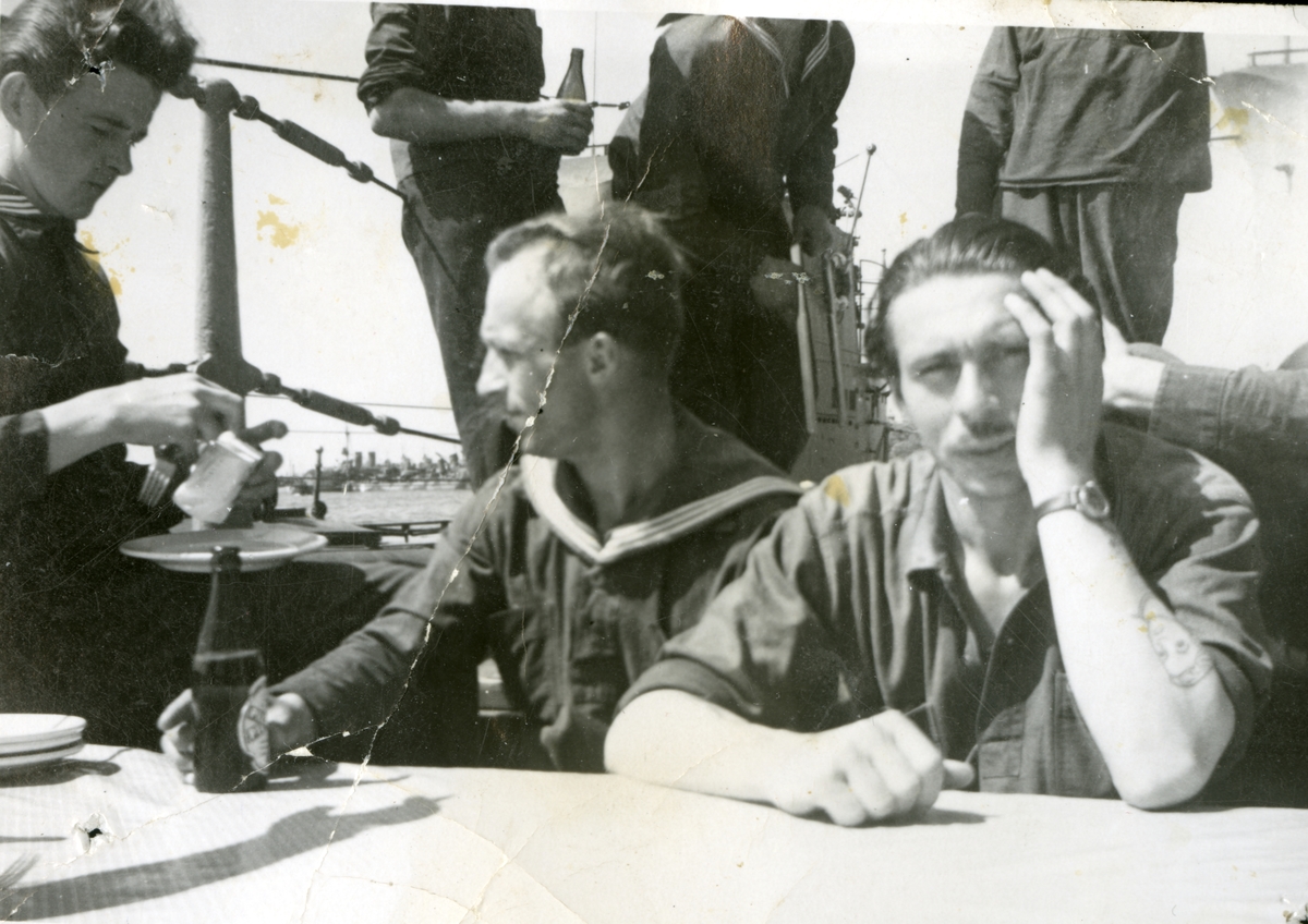 Gåva av Kenneth Larsson, son till Gösta Larsson. Fotografier från Gösta Larssons tjänstgöring i flottan. Fotografier från 1937 - 1954.