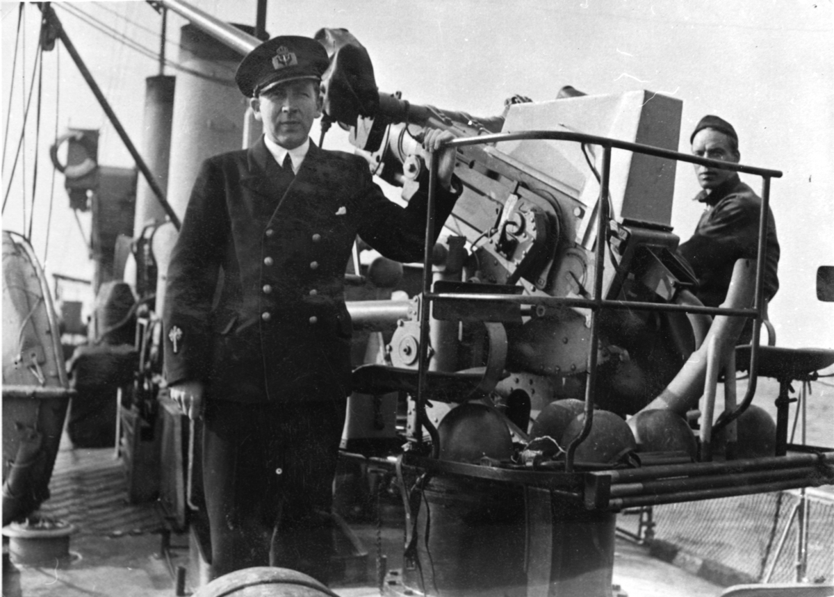 Livet ombord, sittande med en luftvärnskanon.