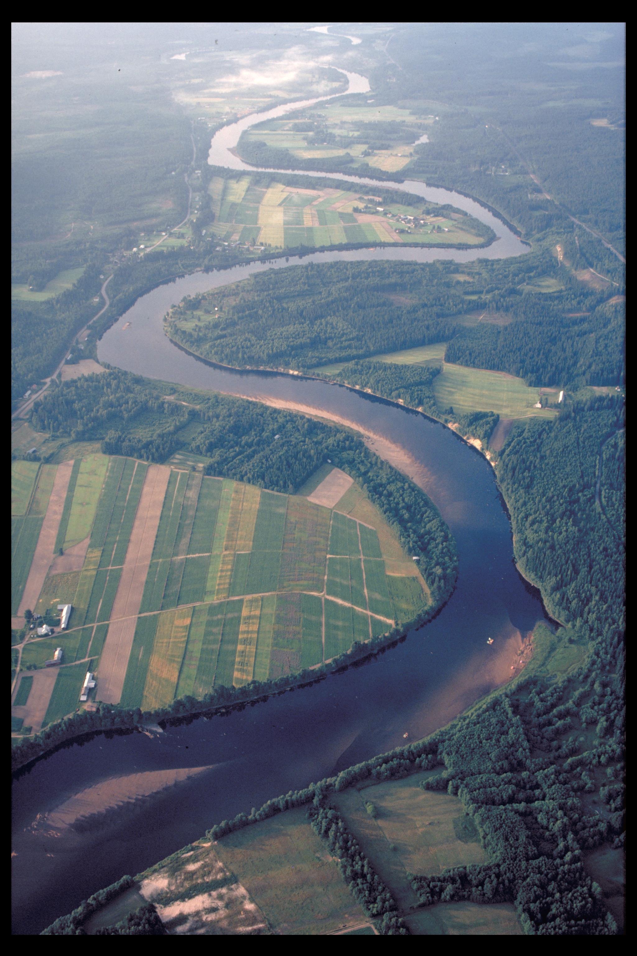 Flygbild över Klarälven. Bilden troligen från mitten av 1980-talet.