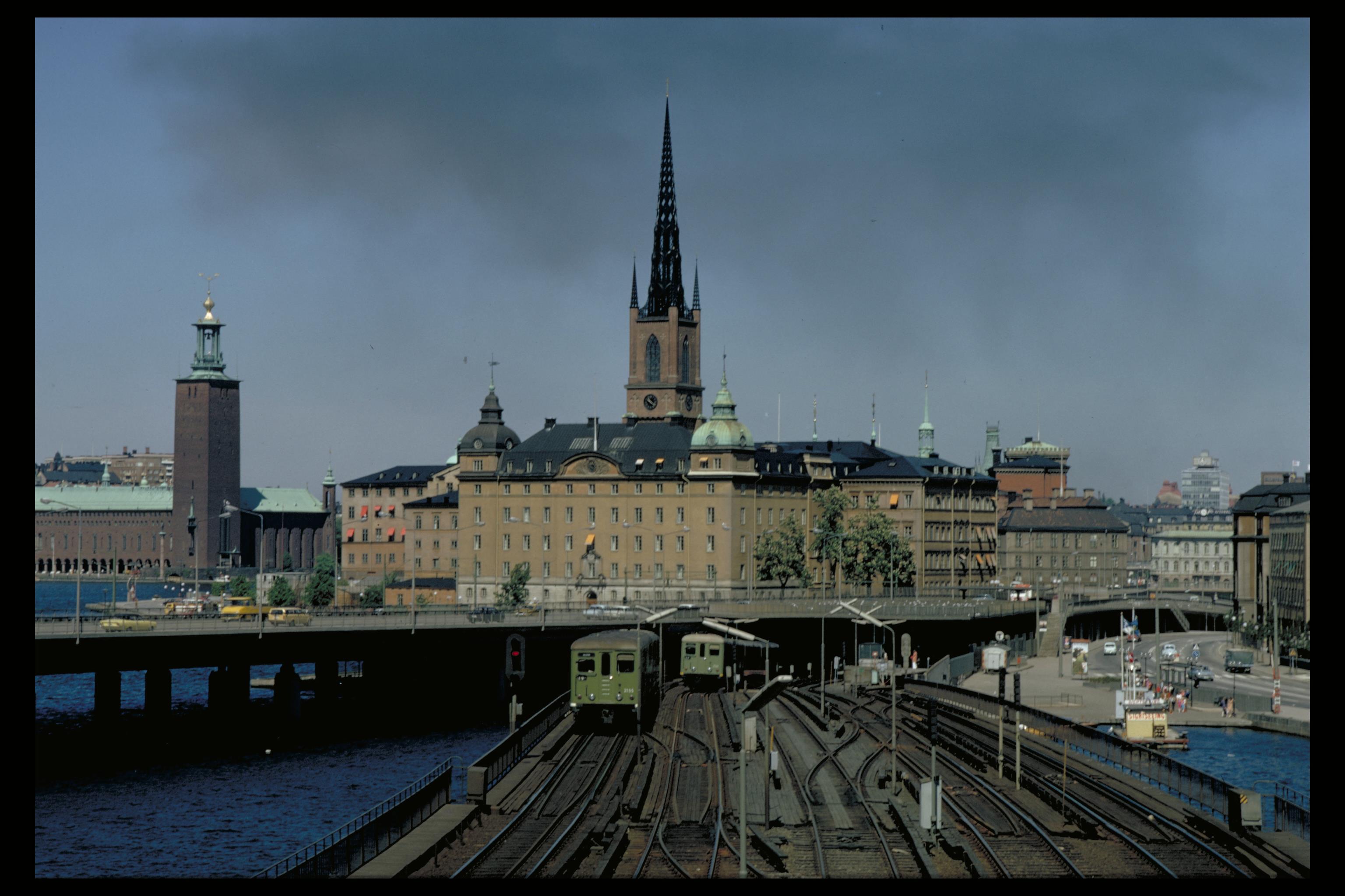 Riddarholmen och Stadshuset från Slussen. Bilden troligen från början av 1970-talet.