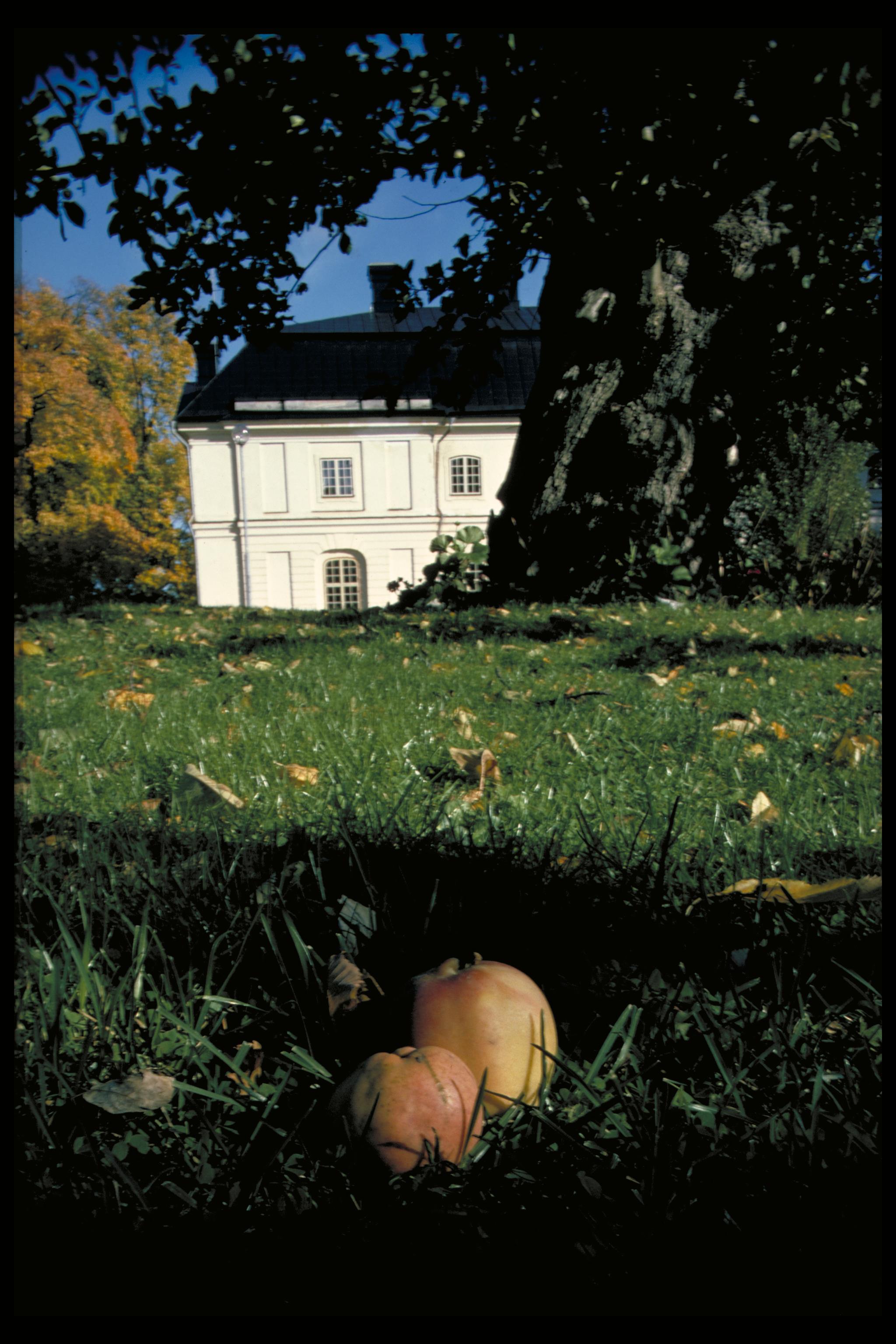 Moderträdet till Åkerö äpplet i förgrunden. Bilden troligen från slutet av 1970-talet.