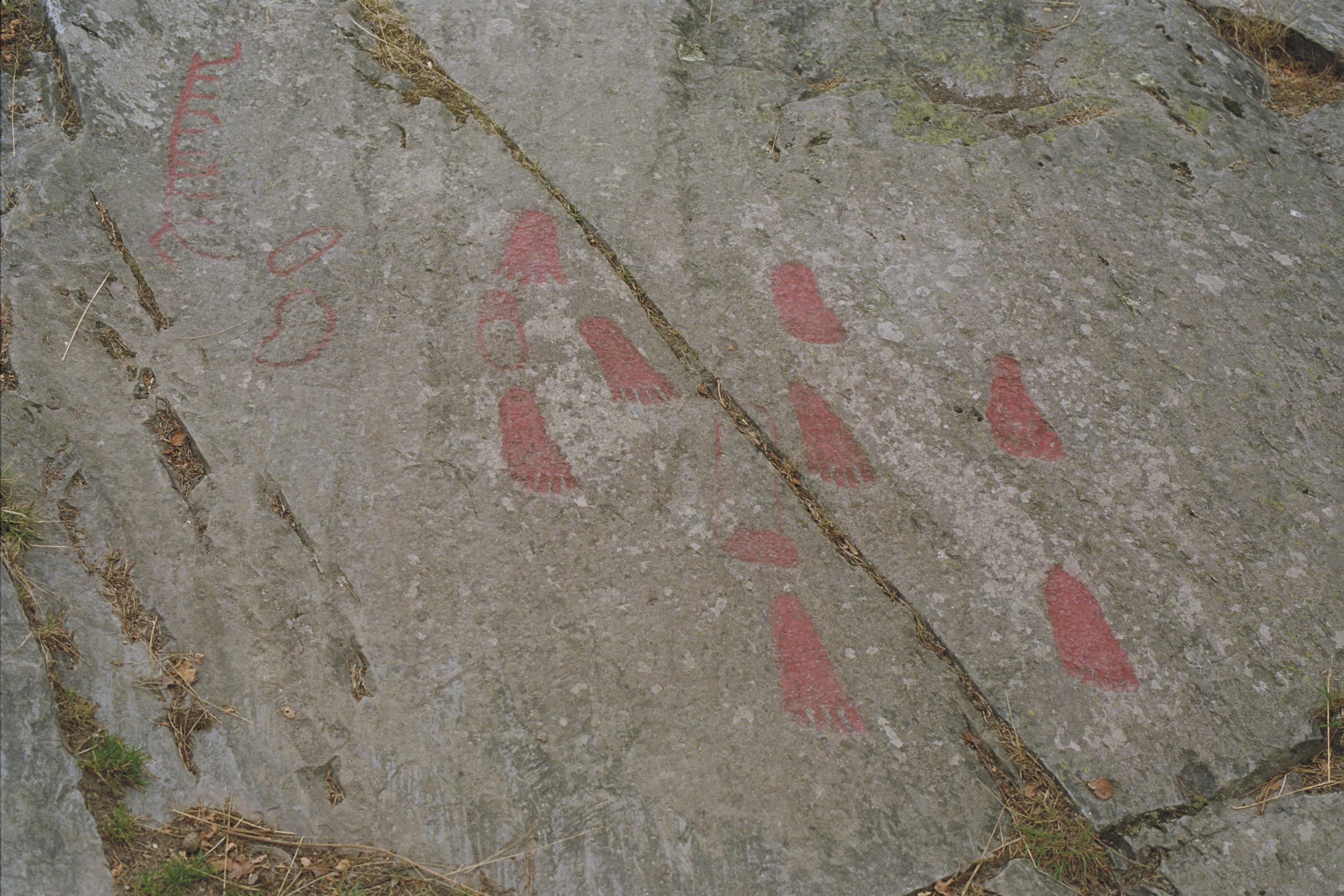 Beskrivning: RAÄ-nummer Tisselskog 12:1. Fotsulefigurer med markerade tår.