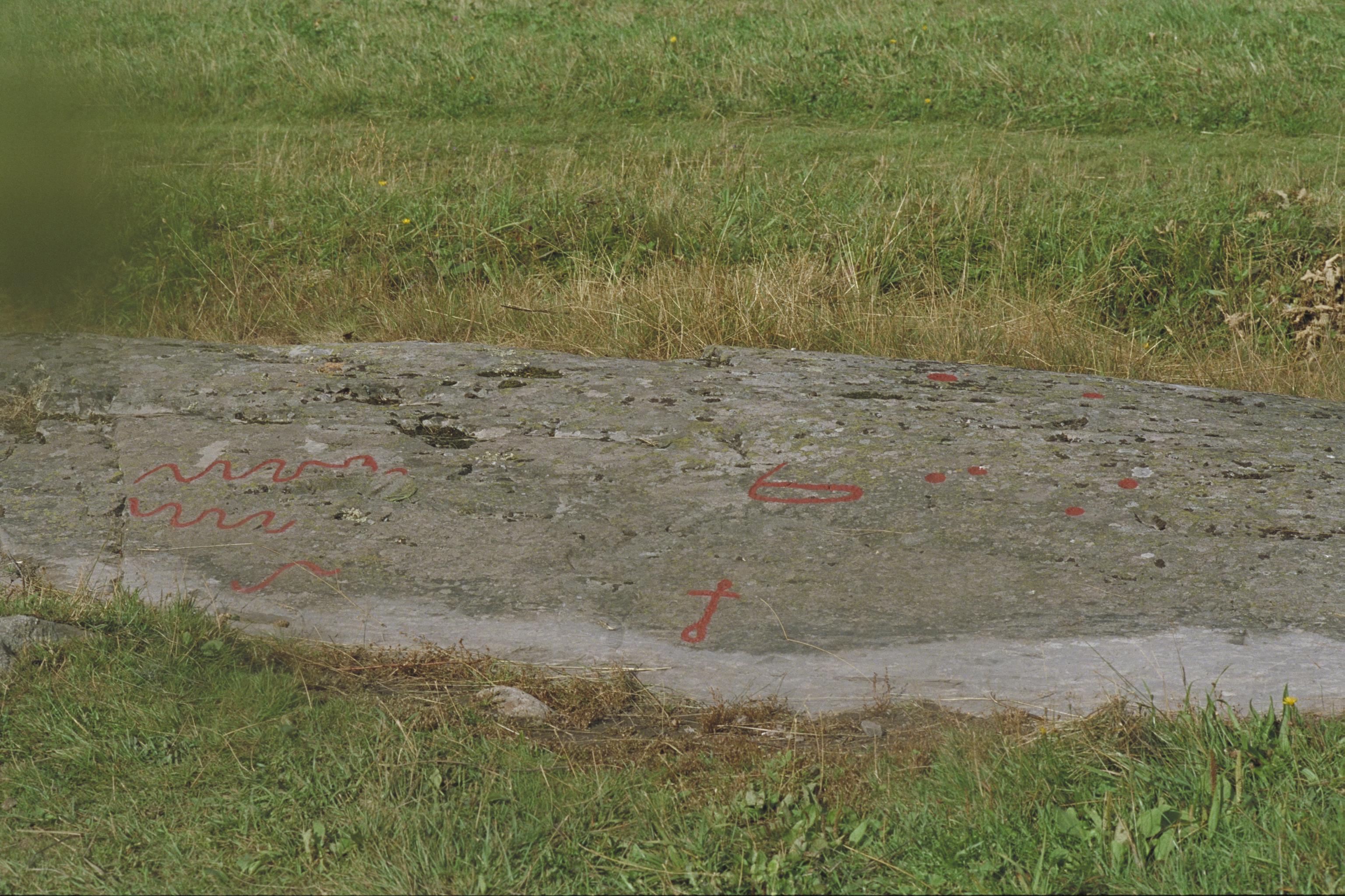RAÄ-nummer Tisselskog 11:1. Människofigur och ormliknande figurer.