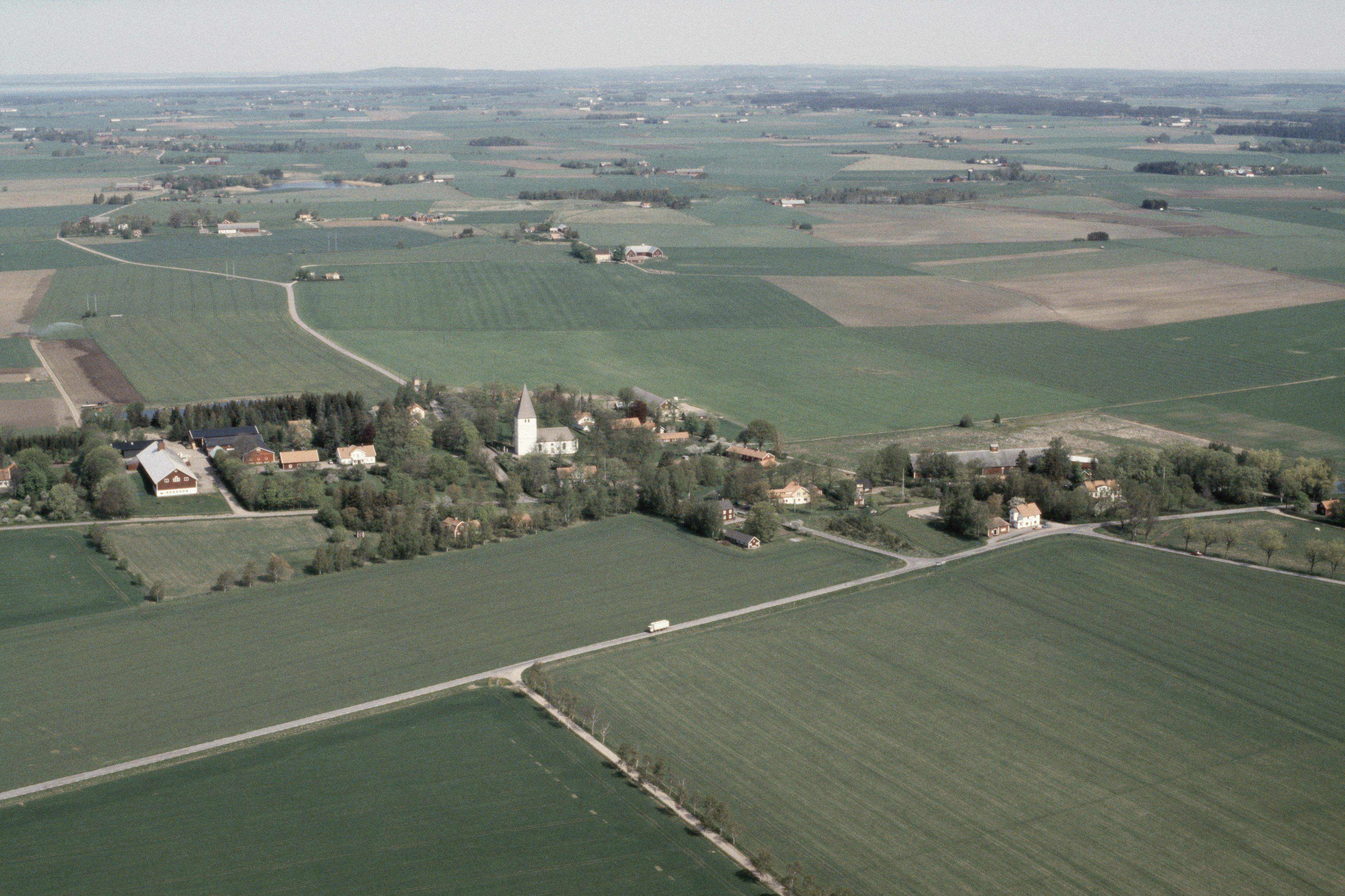 Bjälbo kyrka och kyrkby. Bilden är tagen mot (väderstreck): N