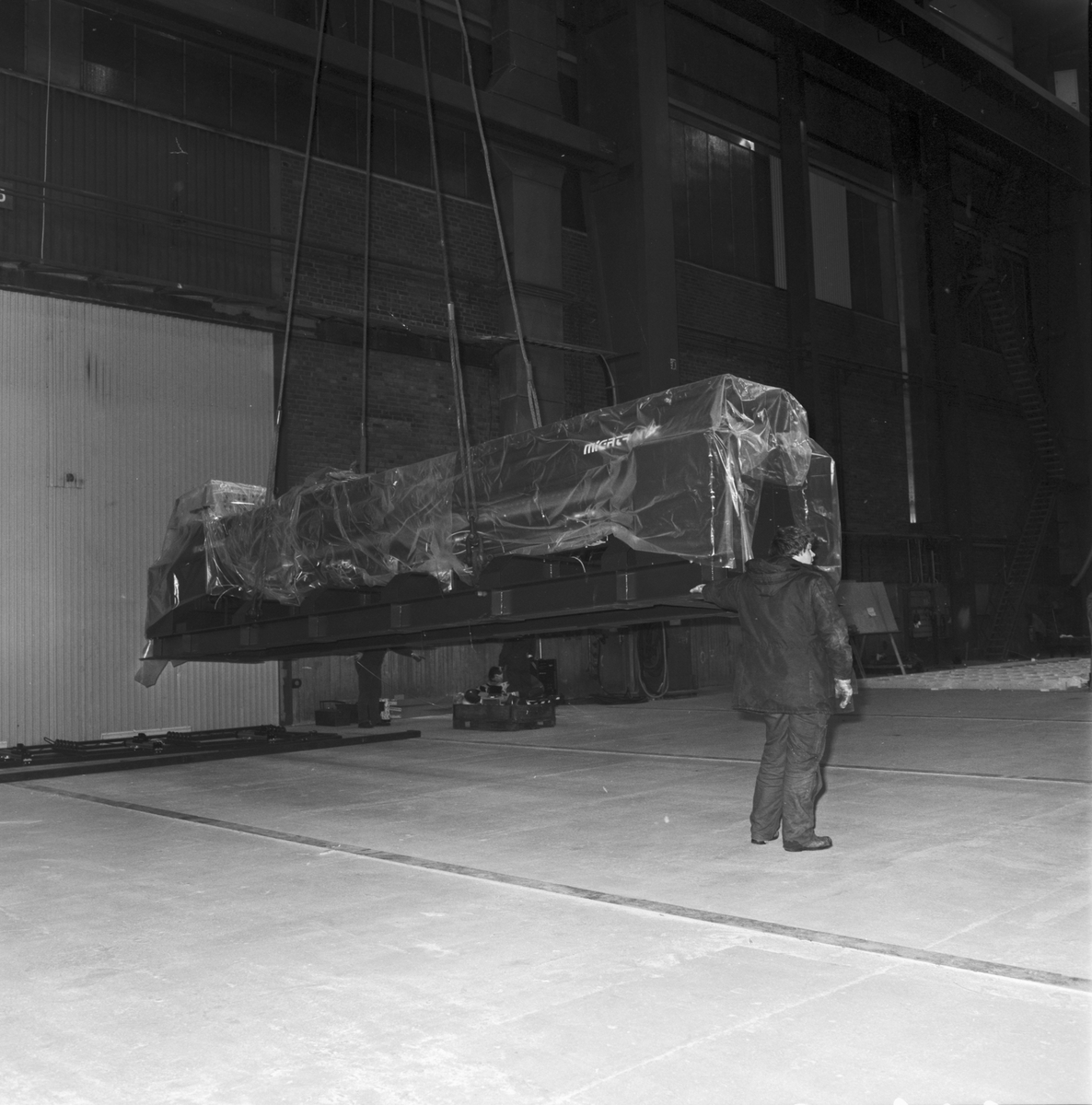 Lyft av svetsmaskin till flakhallen