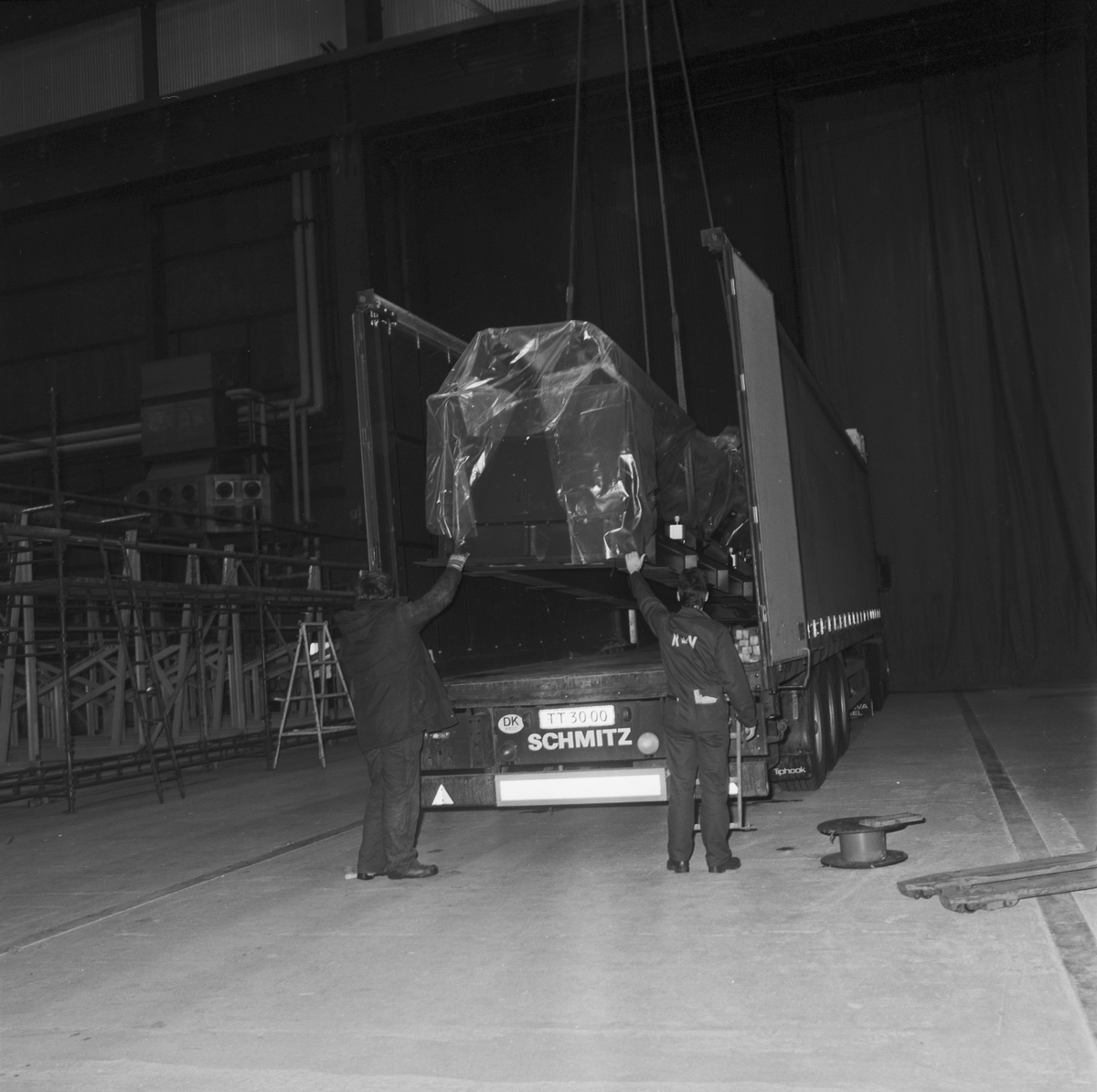 Lyft av svetsmaskin till flakhallen
