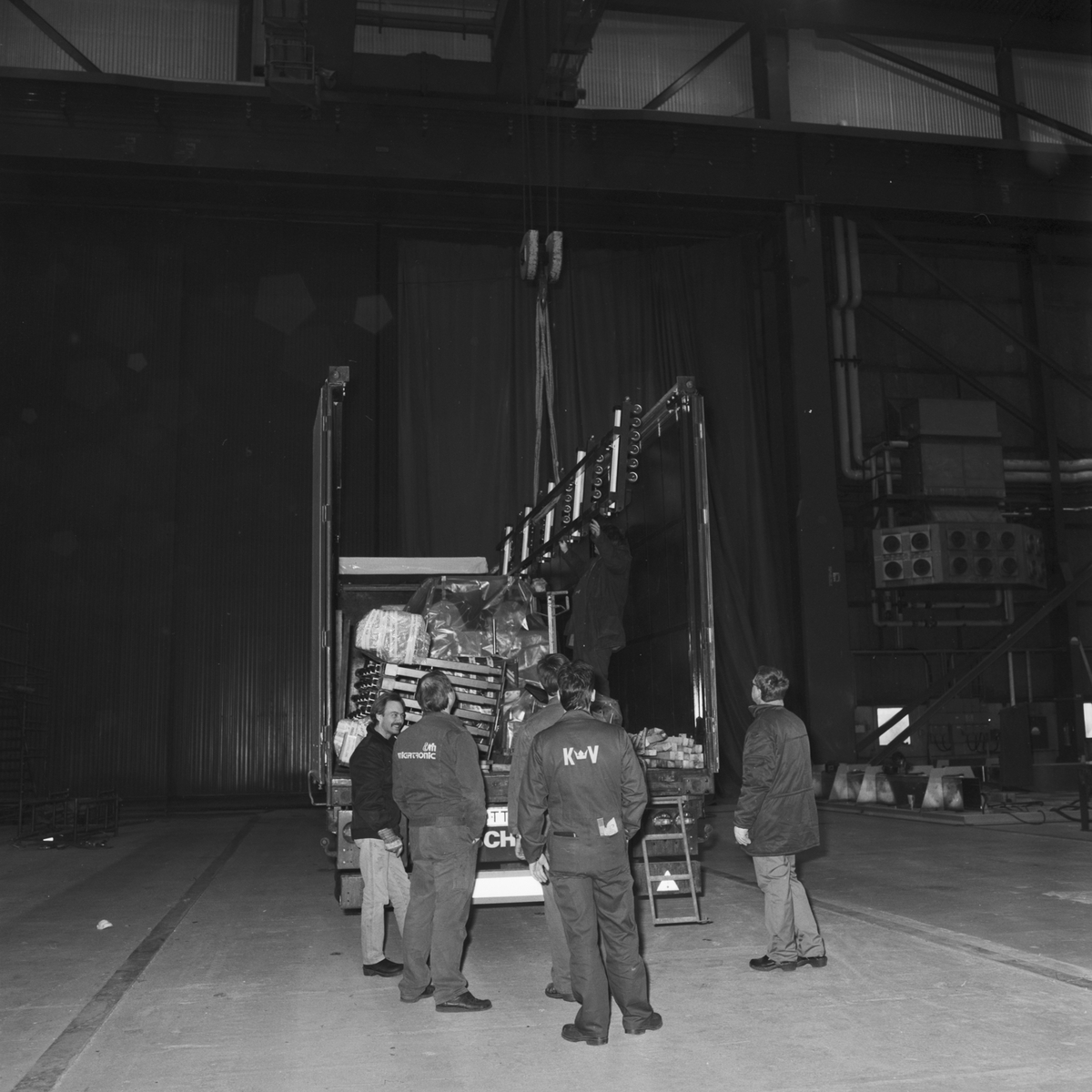 Lyft av svetsmaskin till flakhallen