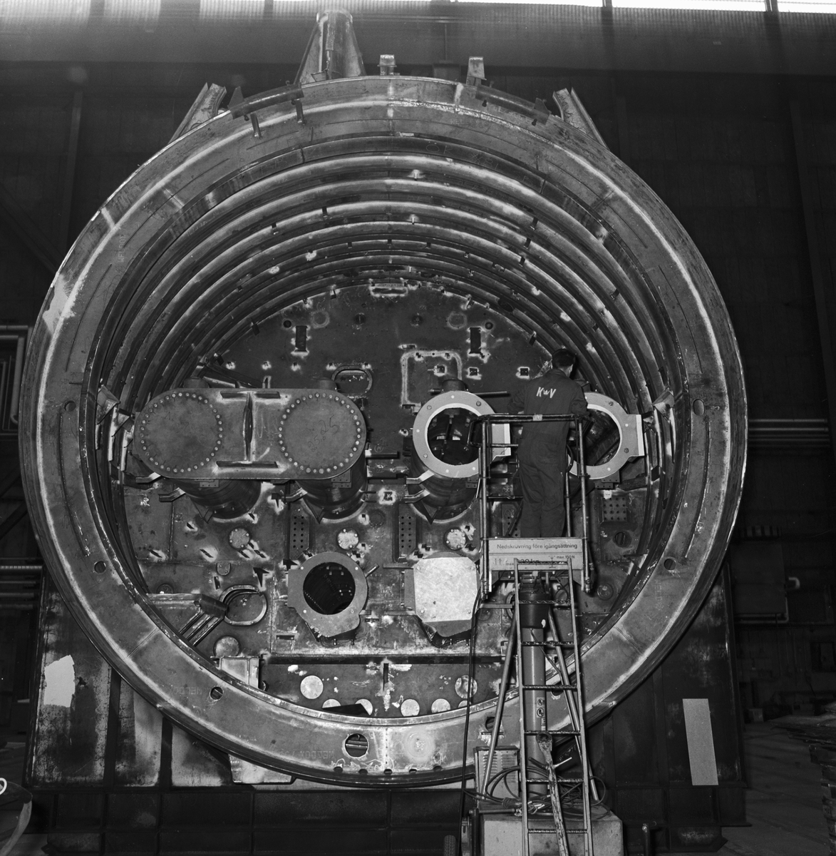 Titel: Torpedtubställ till ubåten A19 i plåtverkst.