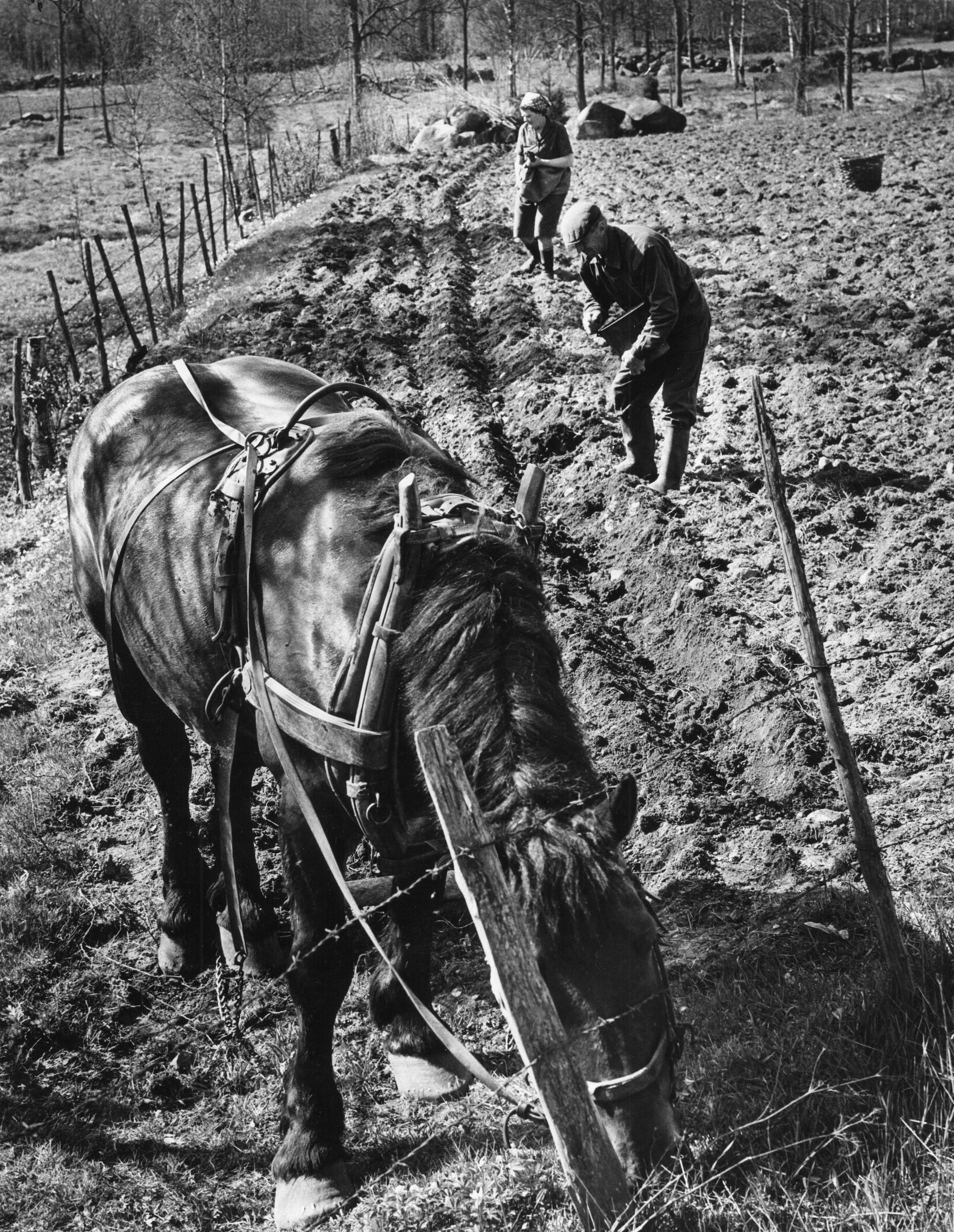 Potatissättning. Bilden troligen från slutet av 1960-talet.