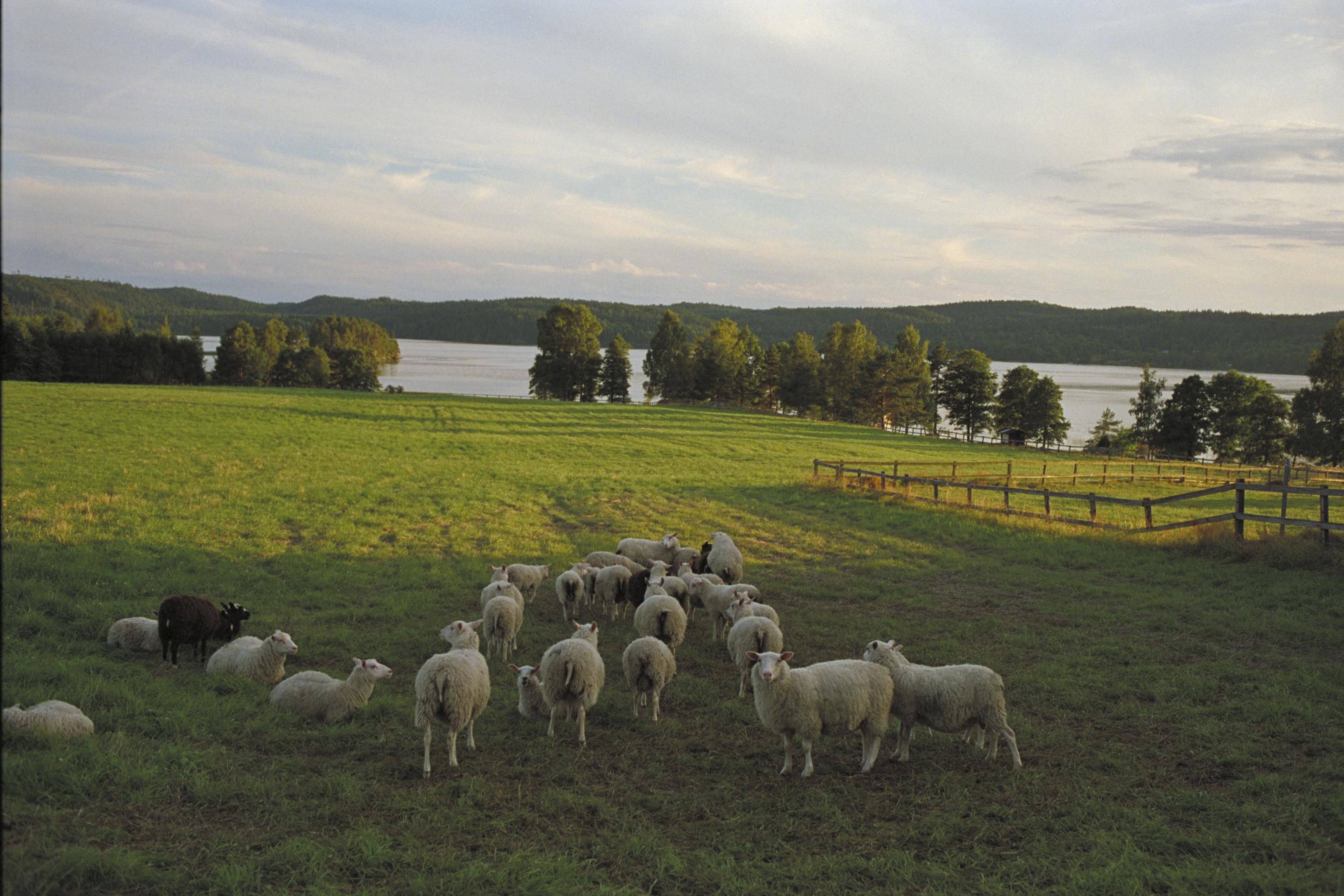 Vy från betesmark mot sjön Råvarpen.