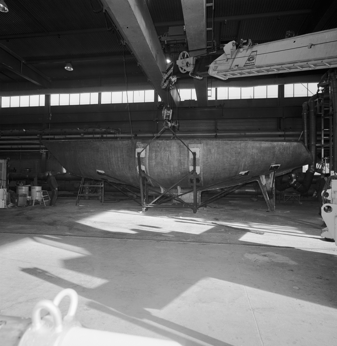 Lyft av skrovformen segelbåten Rhapsody plastverkstan