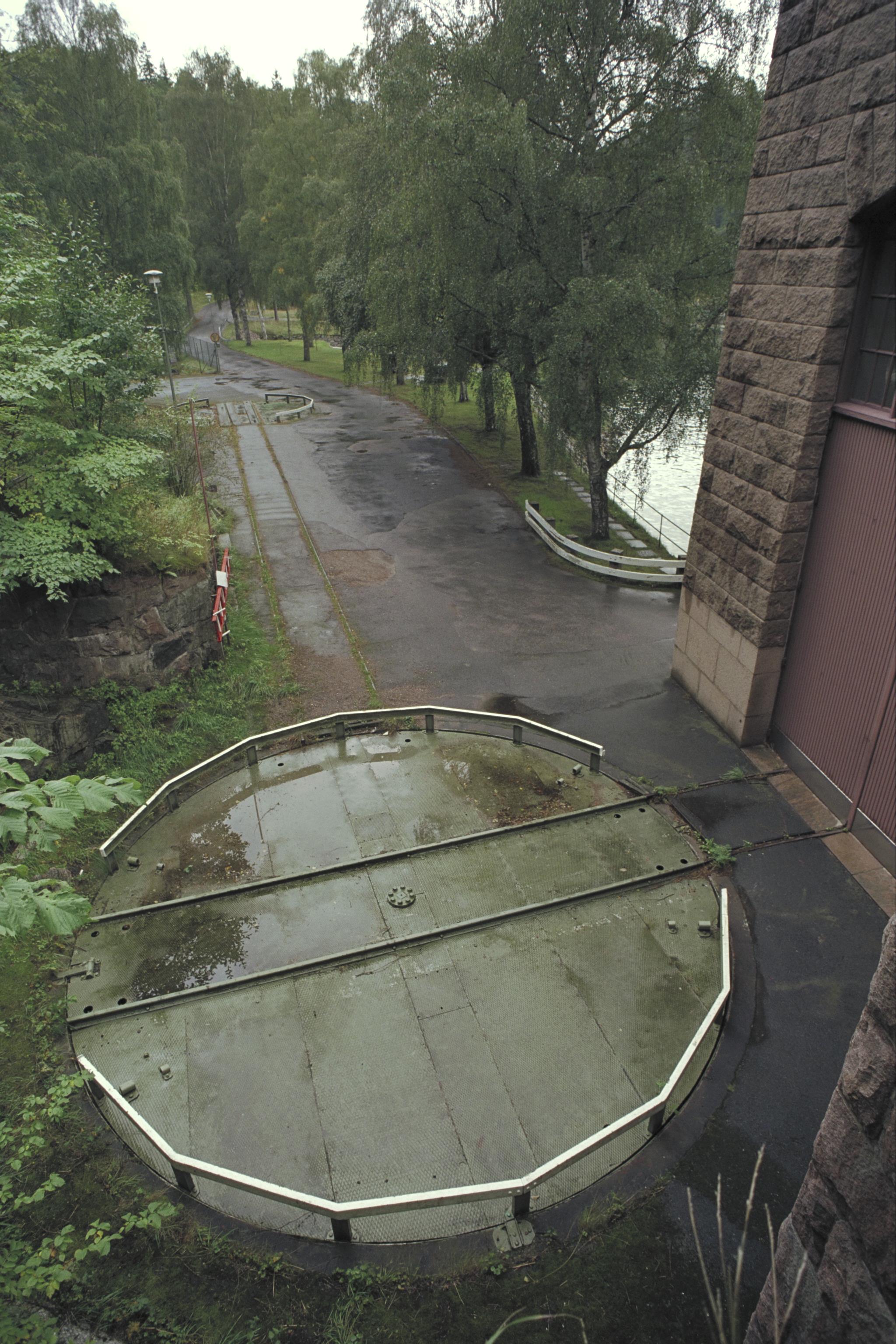 Vändskivan framför porten för vagnar in i turbinbyggnaden.