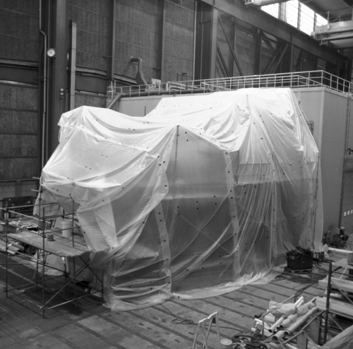 :: Tält över ubåtssektion i skrovhallen\\\\anm. neg ingår i en serie om 7 st varav endast det första\\V 102405 scannats/gp