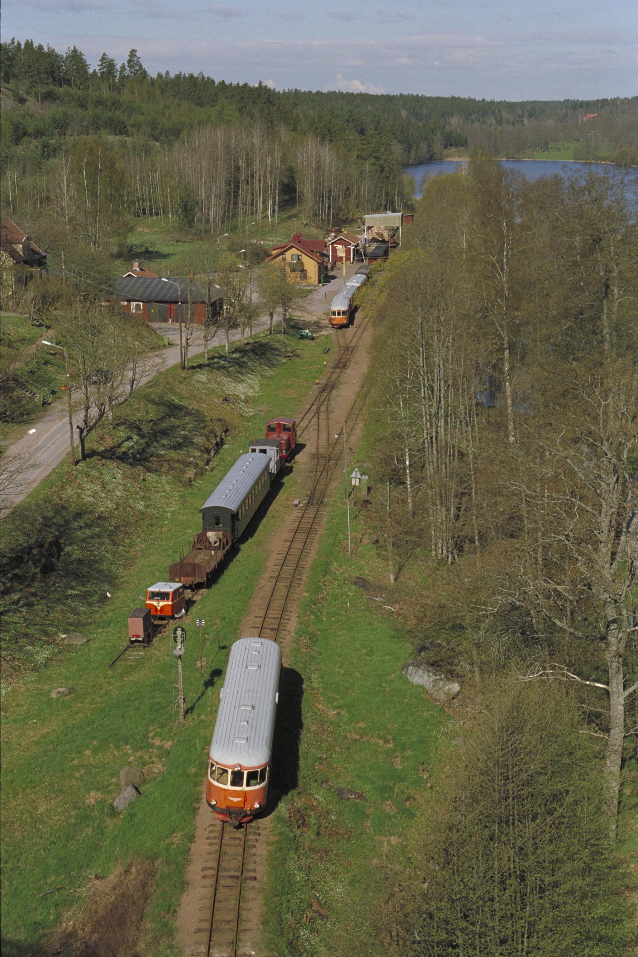 Beskrivning: Verkebäck. Stationsområdet, rälsbuss.