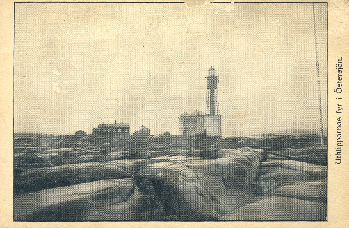 Utklippans fyr i Karlskrona skärgård. Vykort.