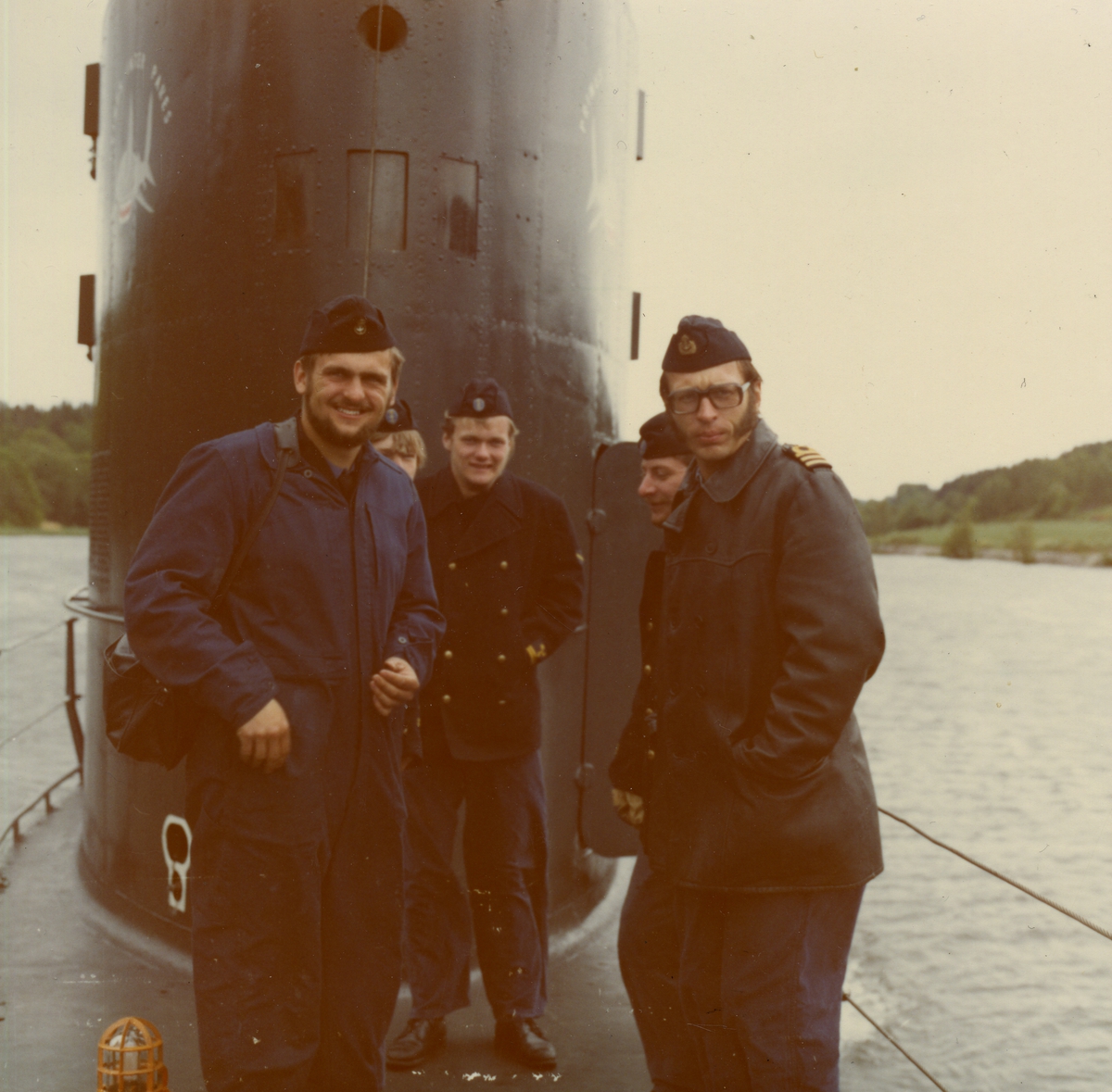 Officeren är 1.M Kn Bo Peders framför tornet på u-båten Hajen 3,