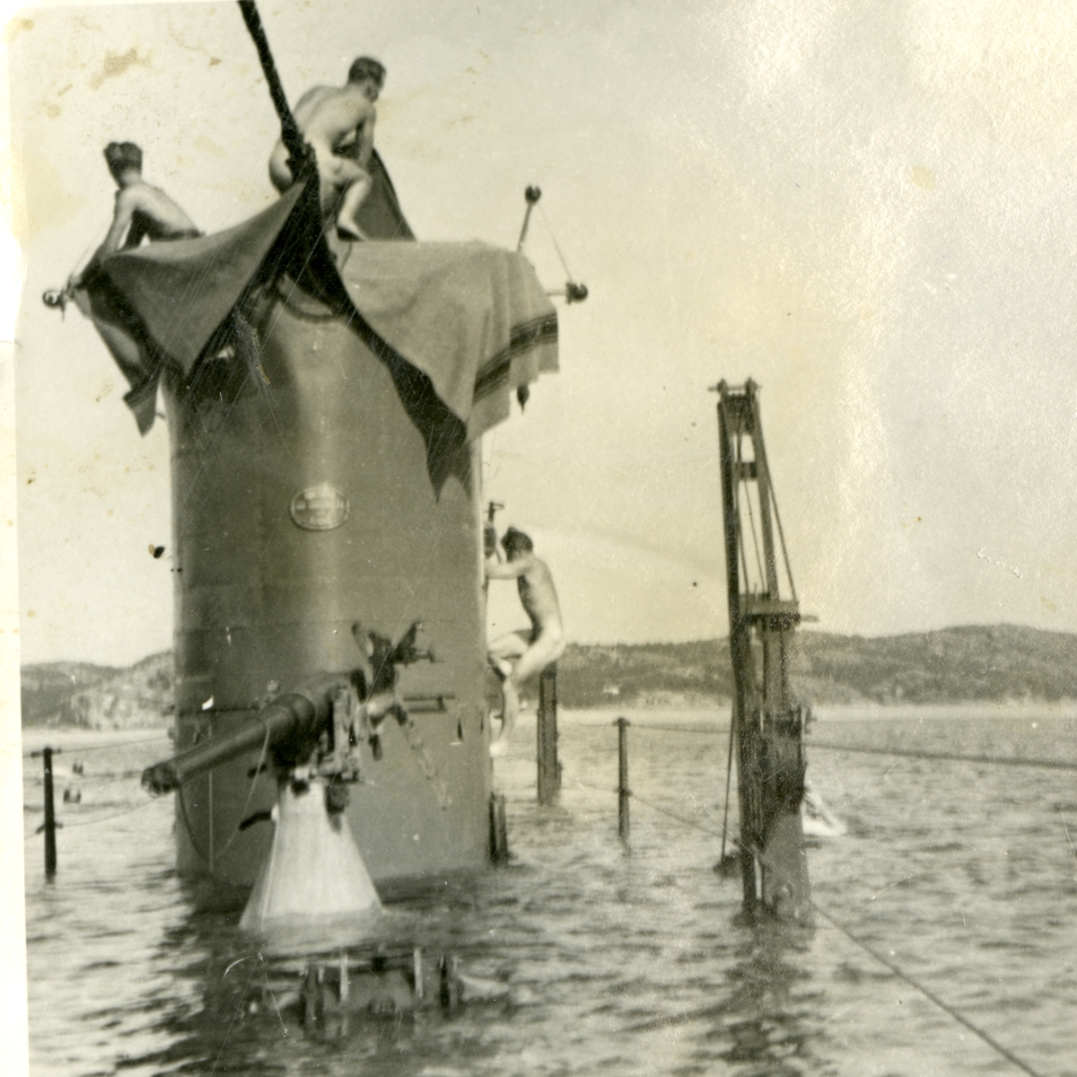 Ubåten Najad 1943. Manskapet tar sig ett bad