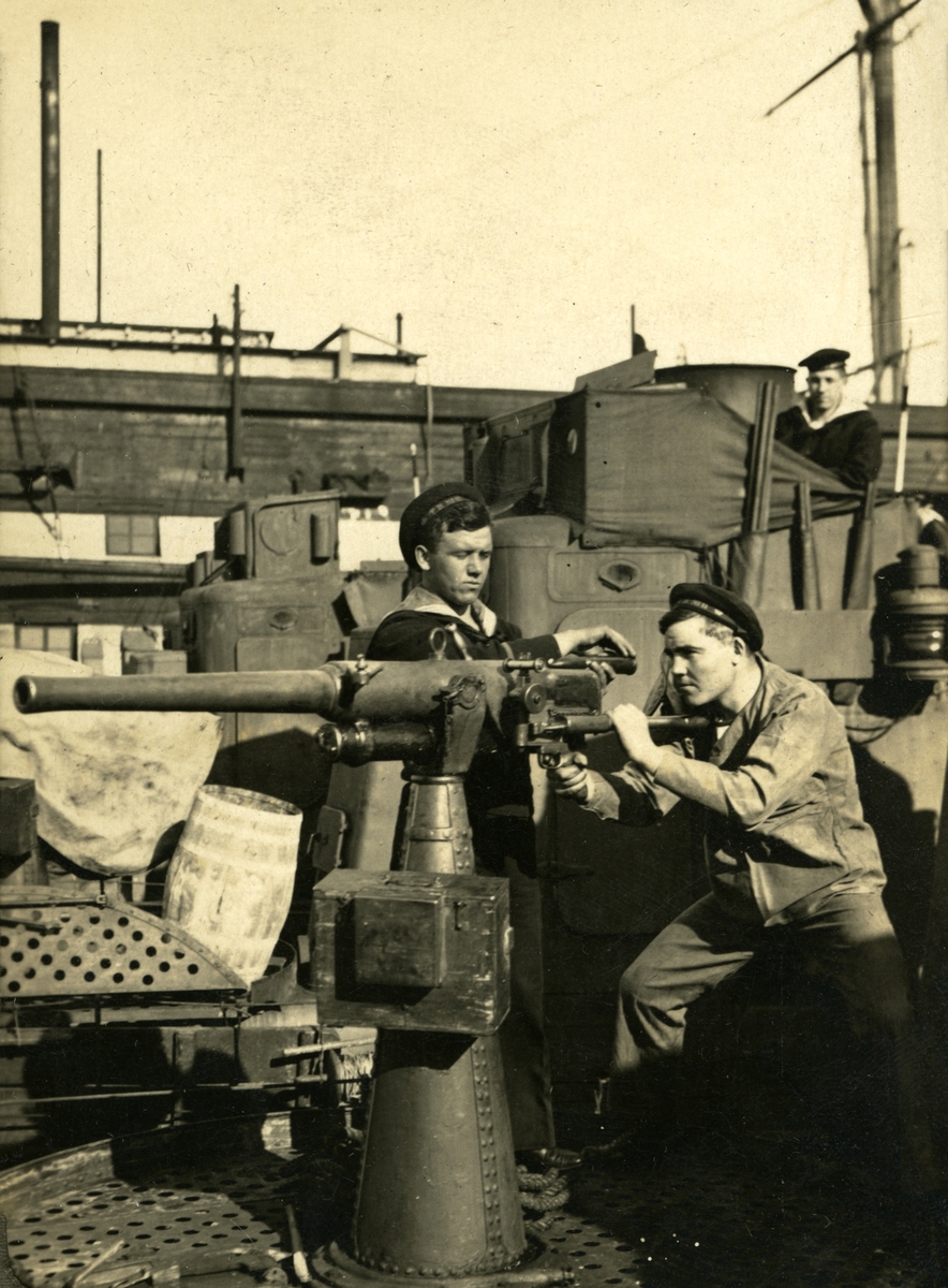 Sjömän ombord ett fartyg, sannolikt en torpedbåt.