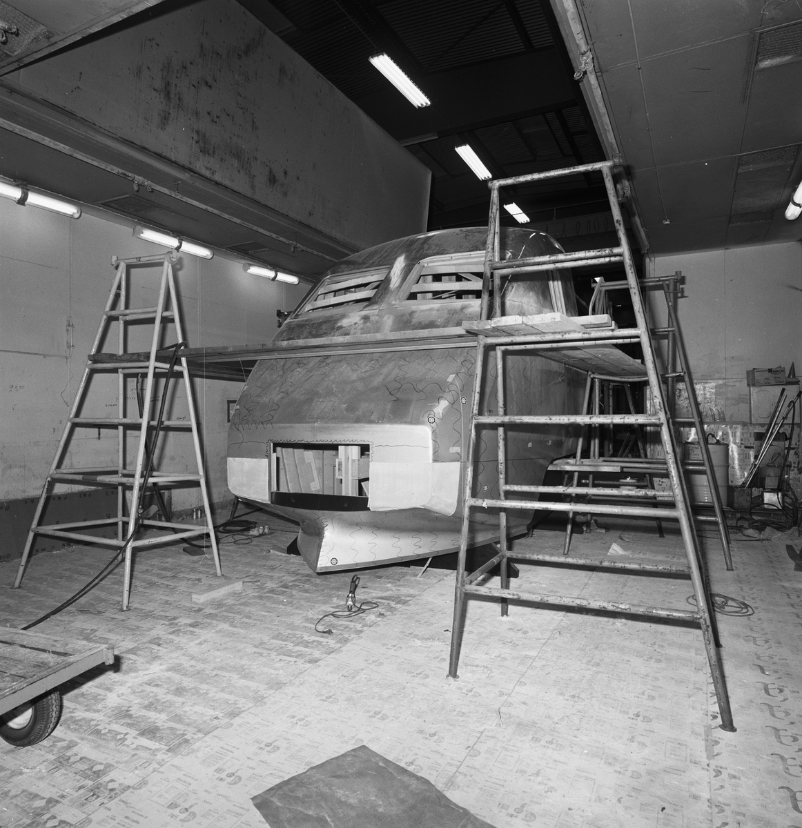 Plastning av skrovformen till segelbåten Rhapsody 43 i plastverkstan